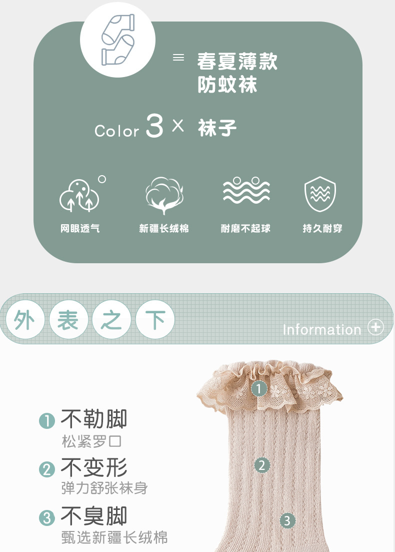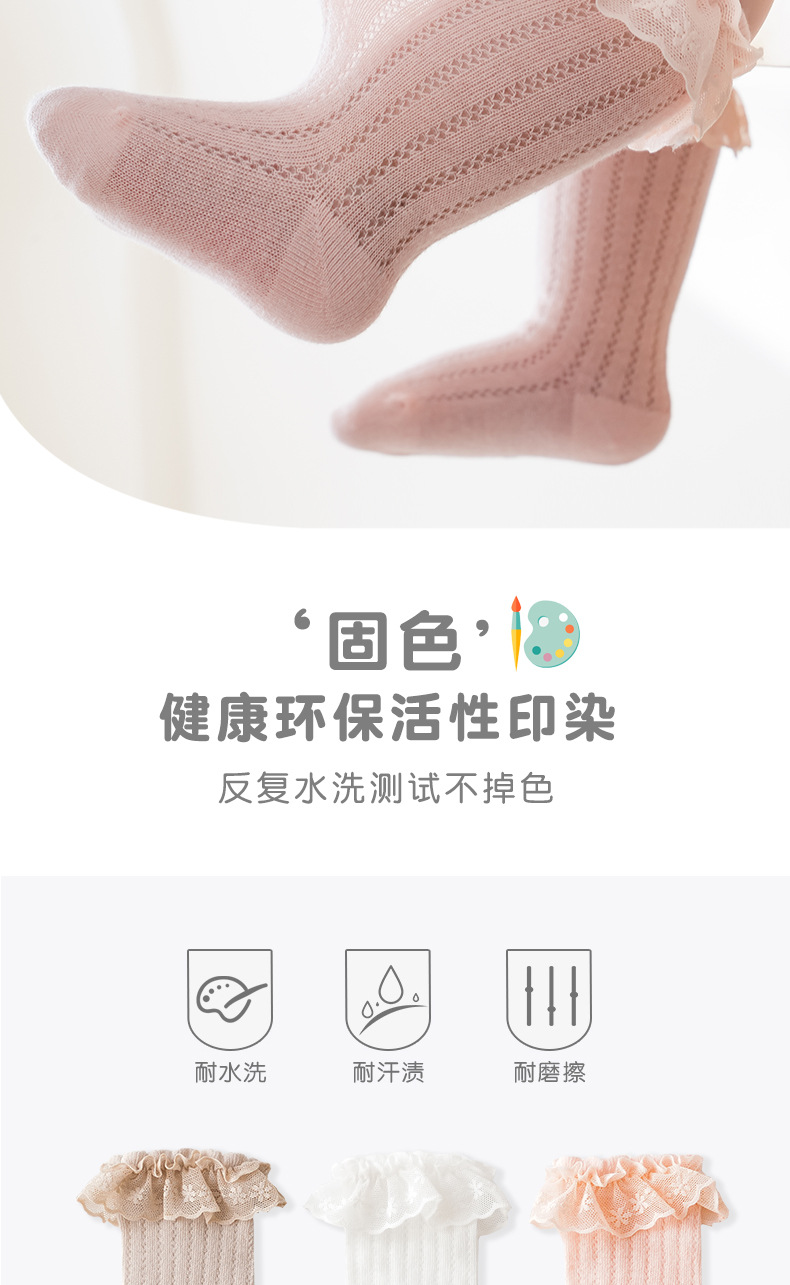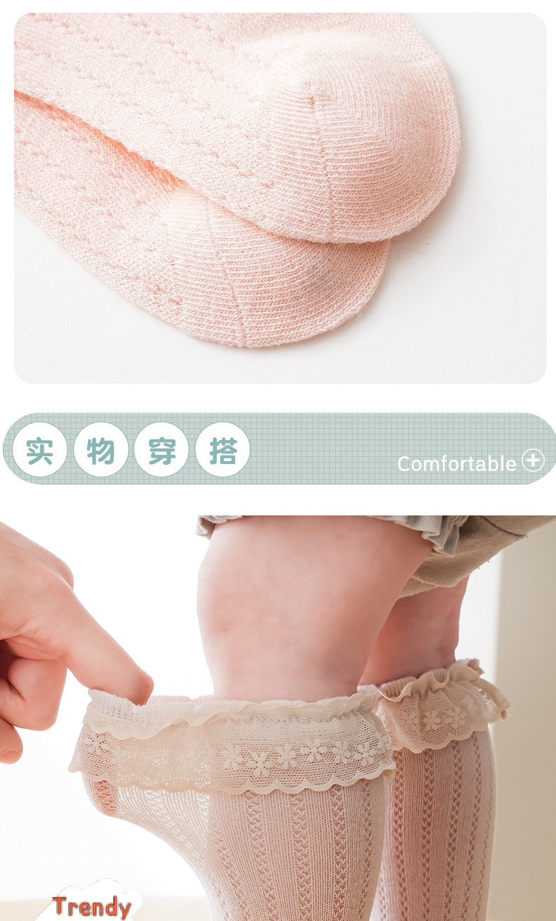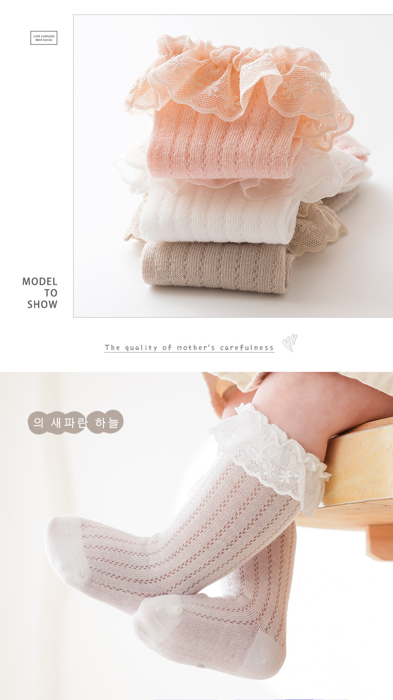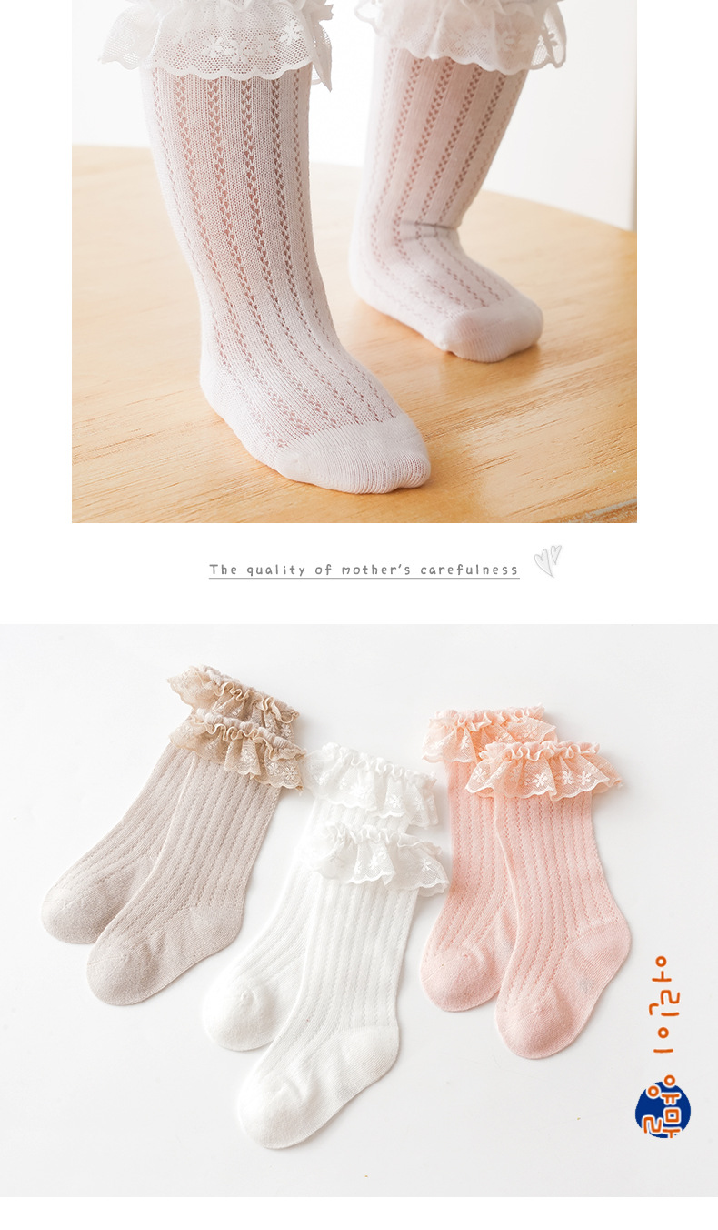 아기 양말 긴 튜브형 여름용 얇은 통기성 모기 방지 여자 아기 공주 레이스 레이스 트림 메쉬 루즈핏 아동 양말스토어 가기