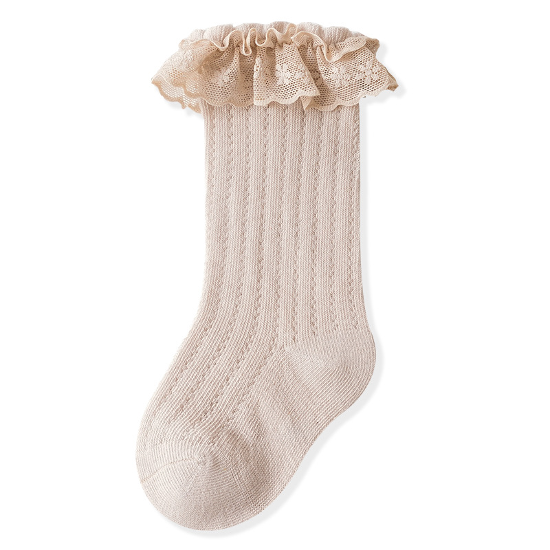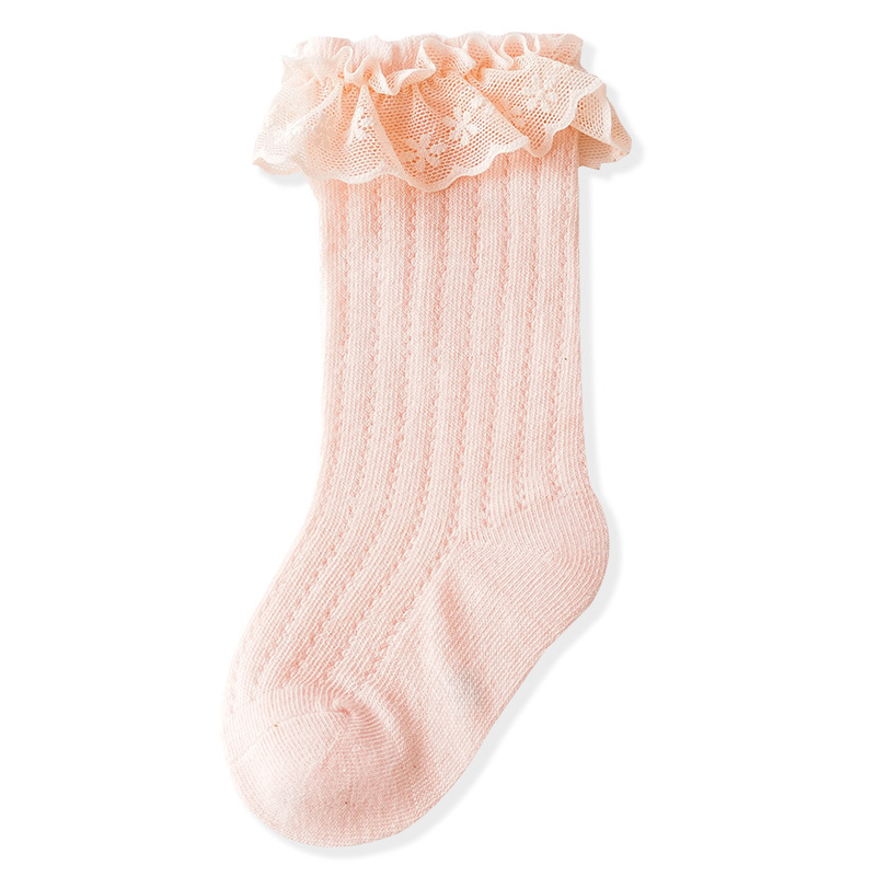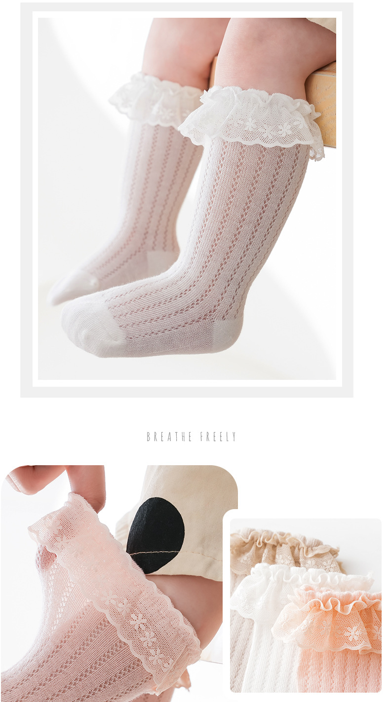 아기 양말 긴 튜브형 여름용 얇은 통기성 모기 방지 여자 아기 공주 레이스 레이스 트림 메쉬 루즈핏 아동 양말