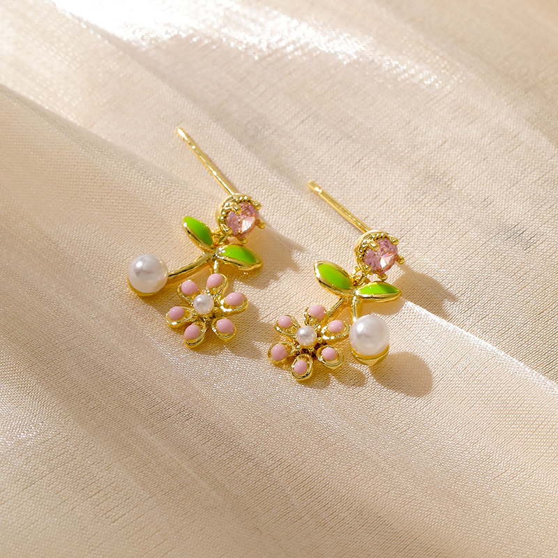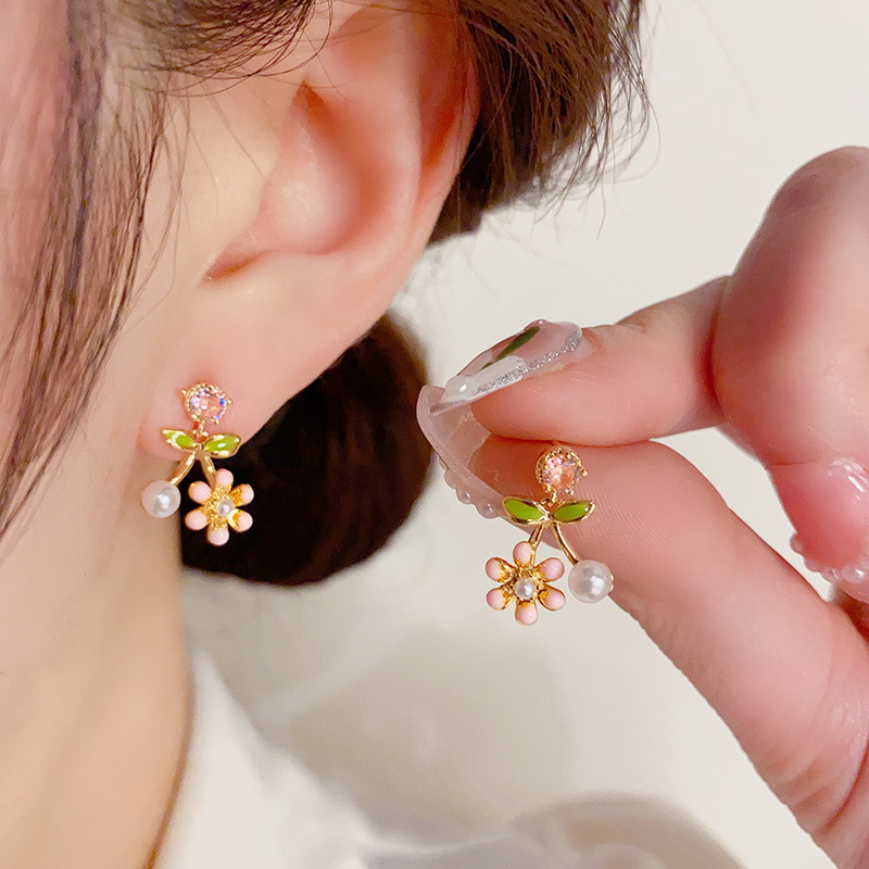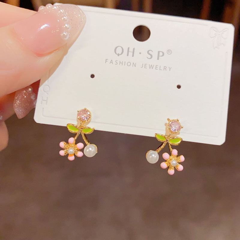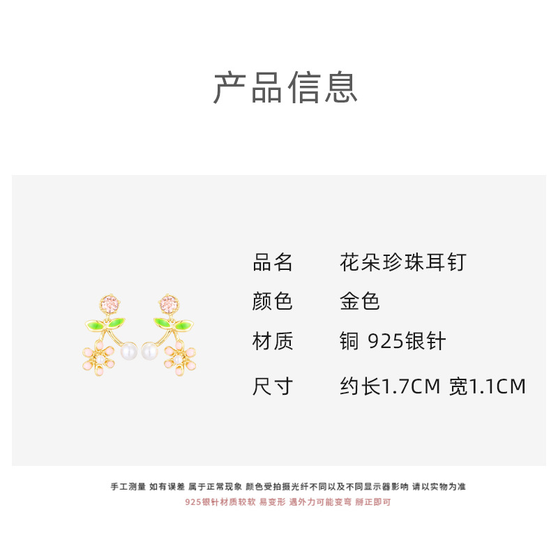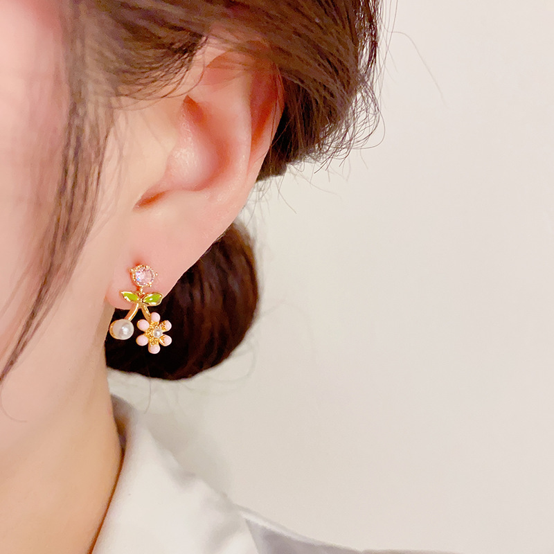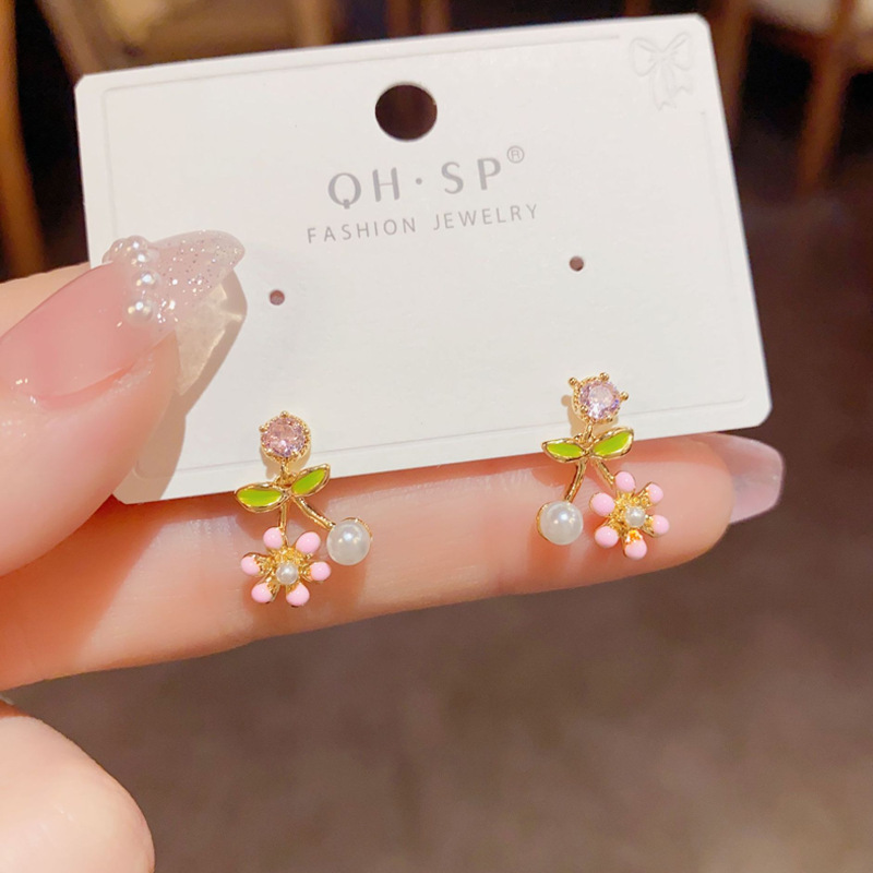 [구리] 여름 신선한 지르콘 귀걸이 925 실버 바늘 달콤한 꽃 작은 귀걸이 여성을위한 절묘한 작은 귀걸이스토어 가기