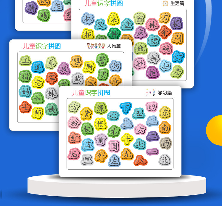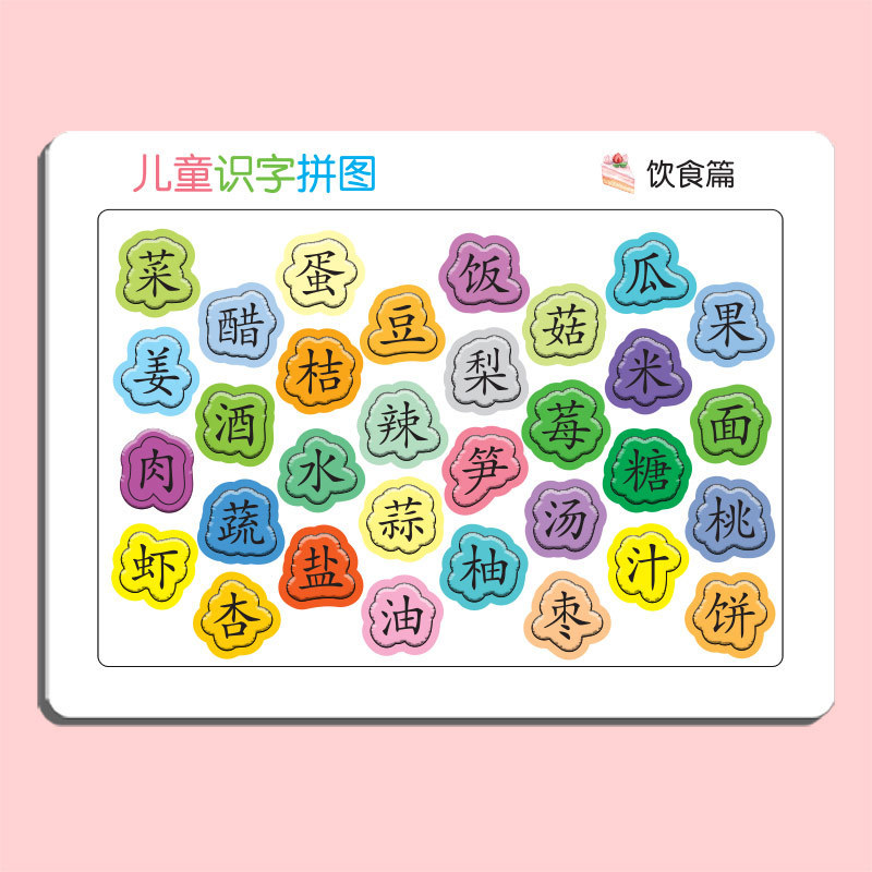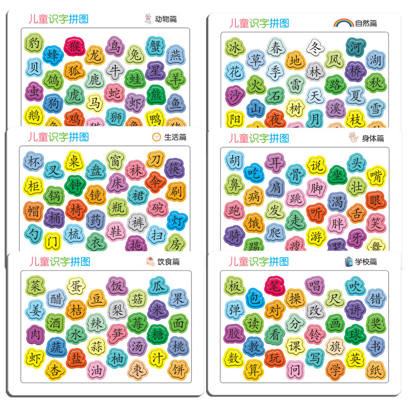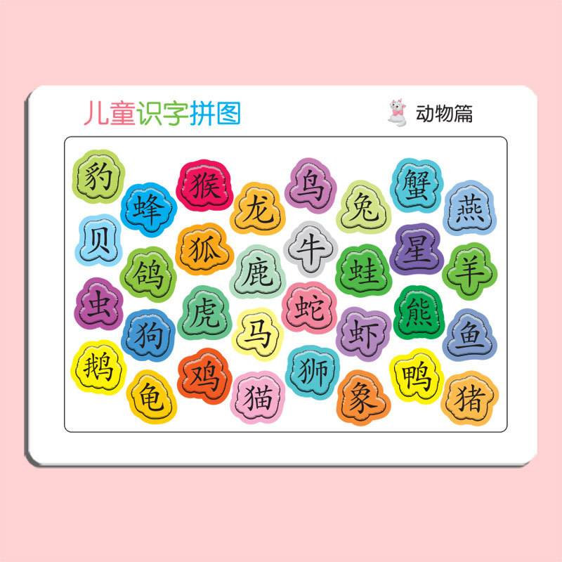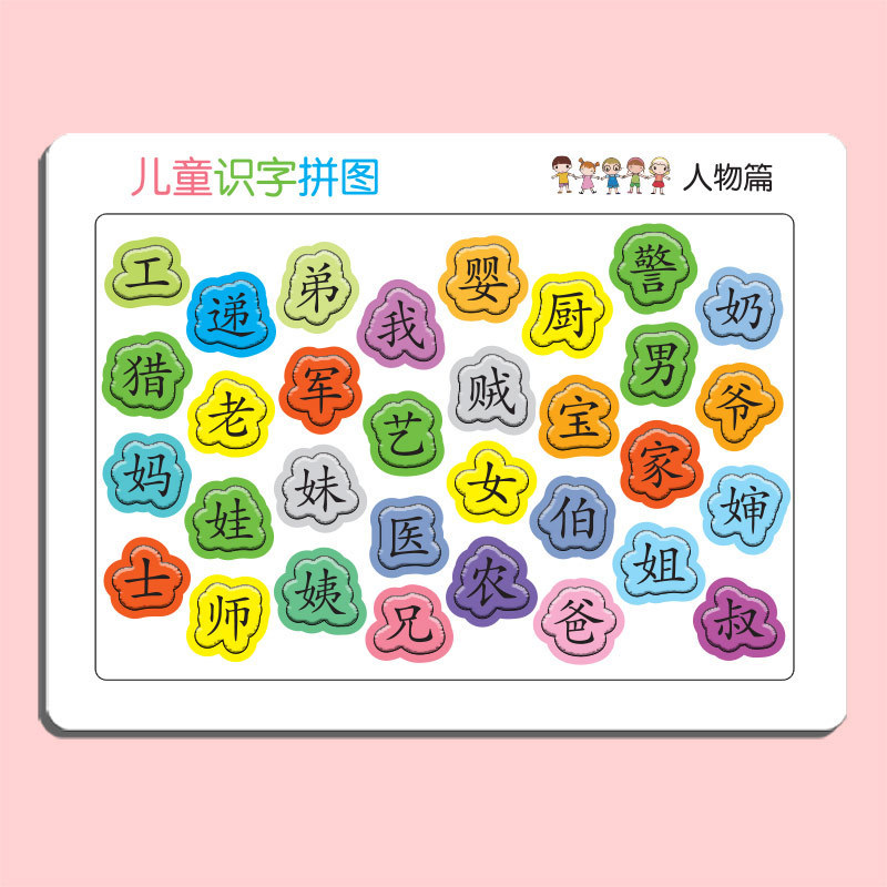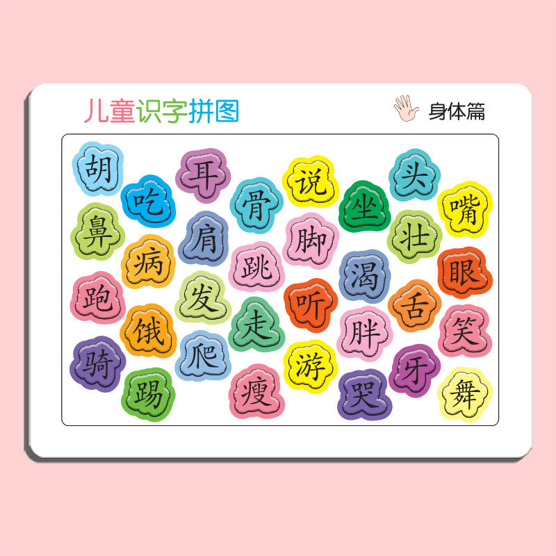 识字拼图现货,每张厚度约4mm,白卡印刷,表面压纹工艺.