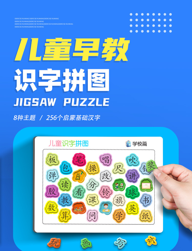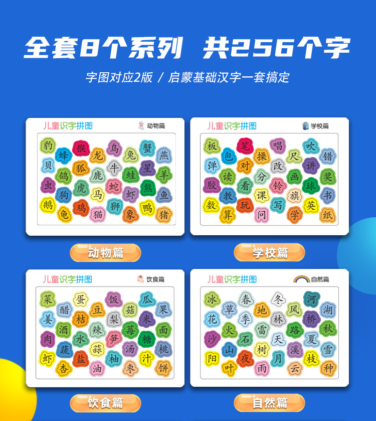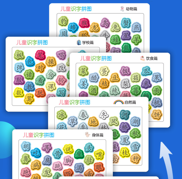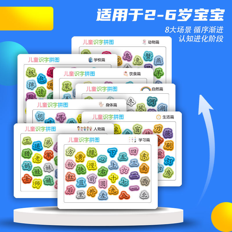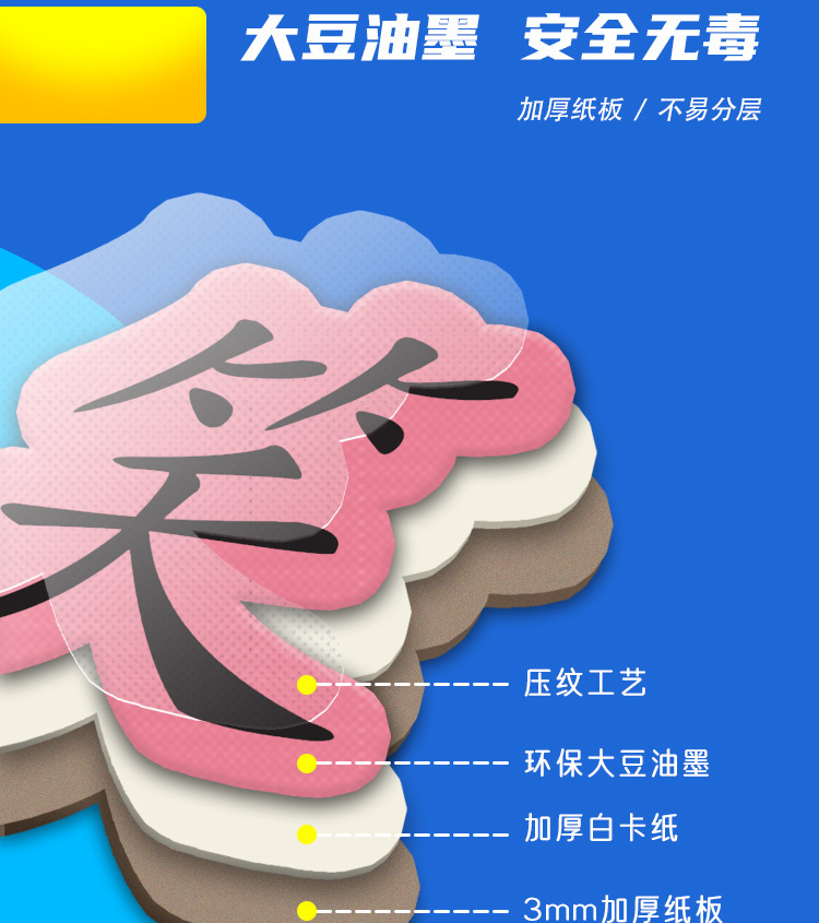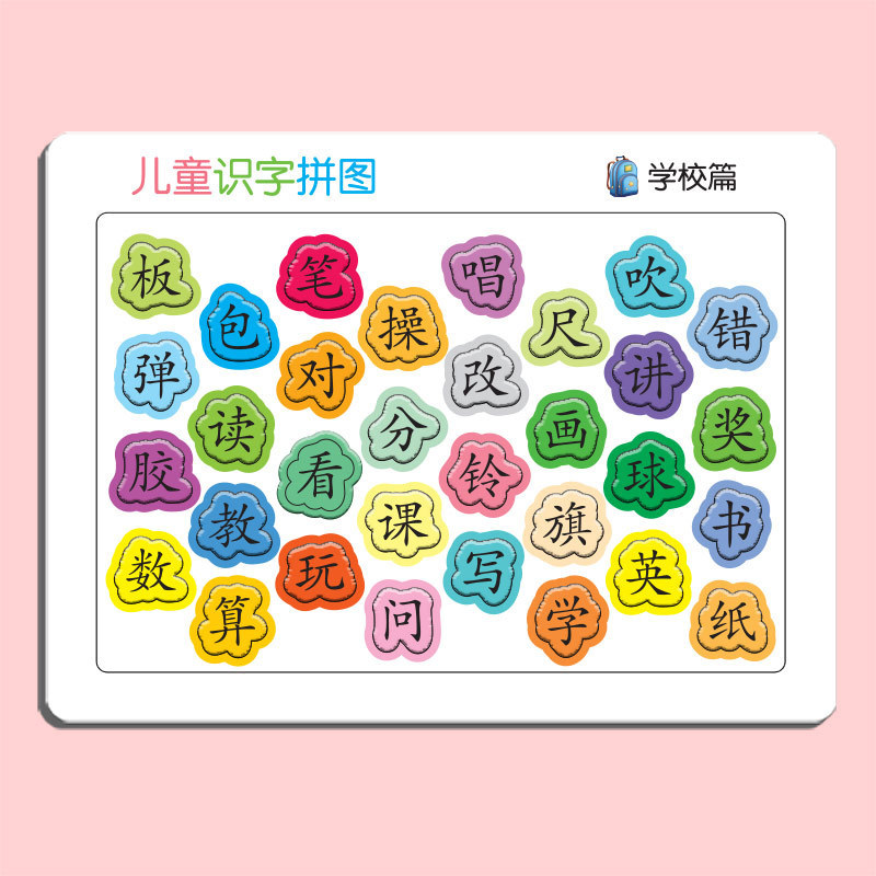 识字拼图现货,每张厚度约4mm,白卡印刷,表面压纹工艺.