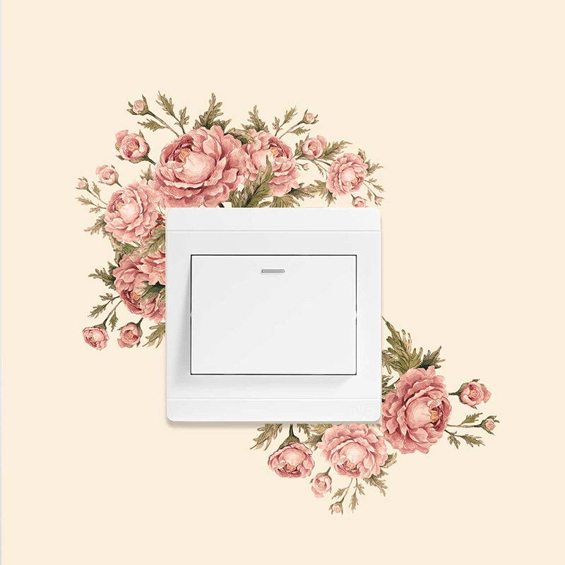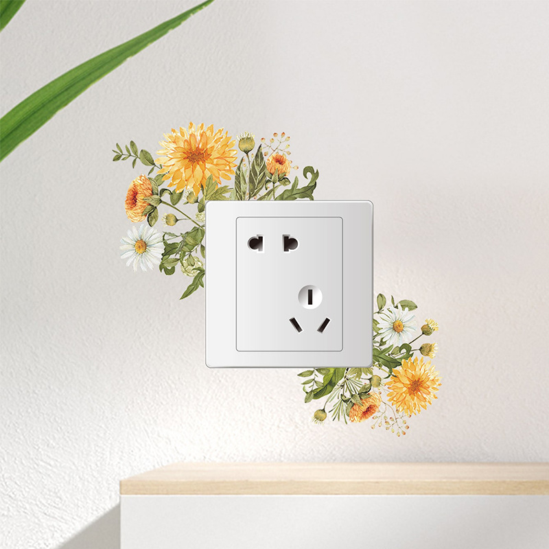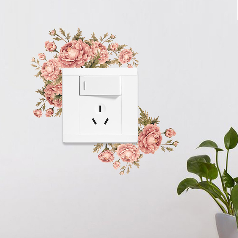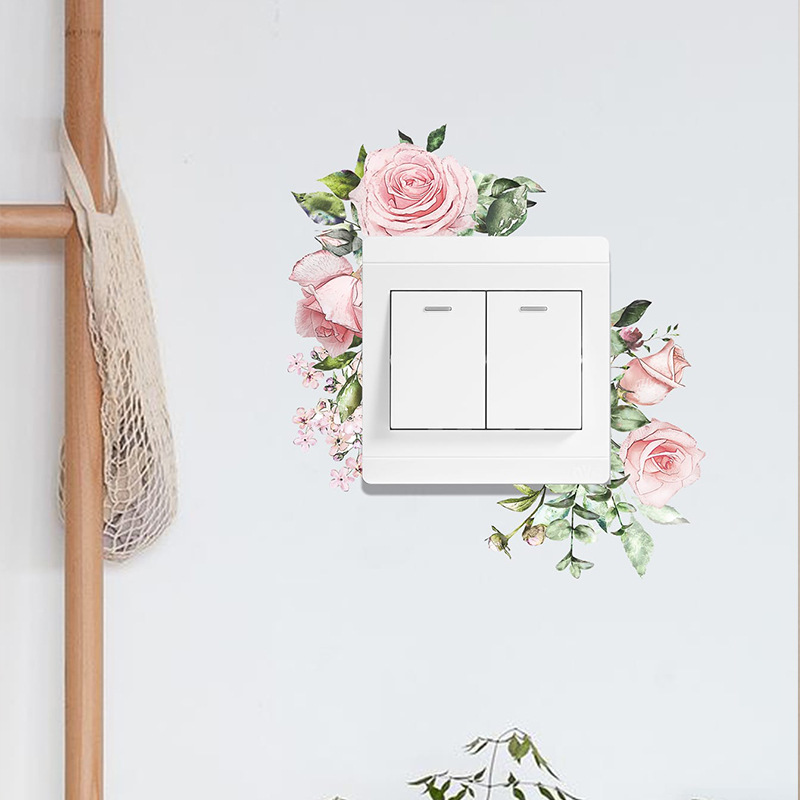 대외 무역 녹색 장미 데이지 모란 꽃 잎 스위치 스티커 가정 장식 벽 스티커 자체 접착 도매