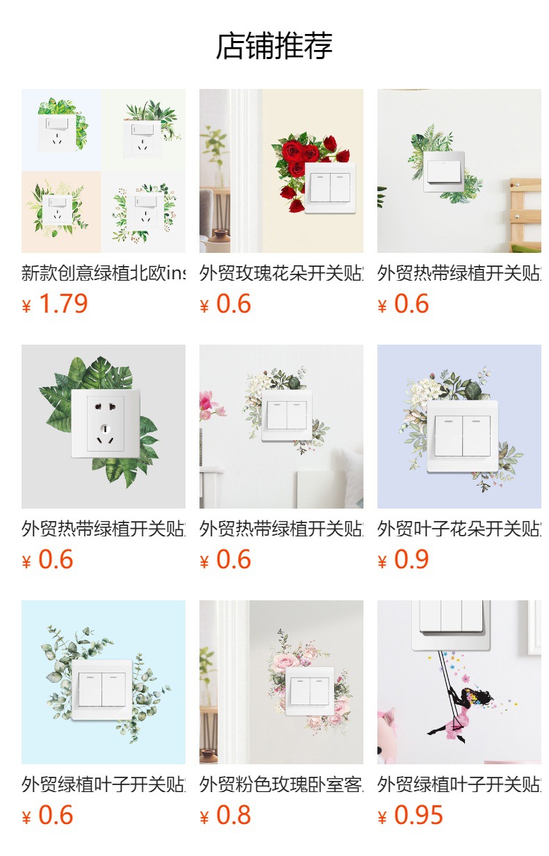 대외 무역 녹색 장미 데이지 모란 꽃 잎 스위치 스티커 가정 장식 벽 스티커 자체 접착 도매스토어 가기