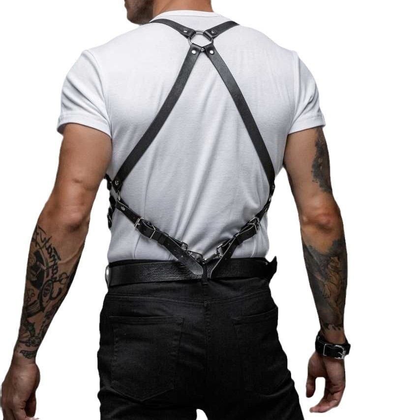 크로스 보더 핫 셀링 트렌디 한 남성용 가죽 벨트 바디 구속 어깨 스트랩 구속 디아블로 스타일 섹시한 가죽 스트랩
