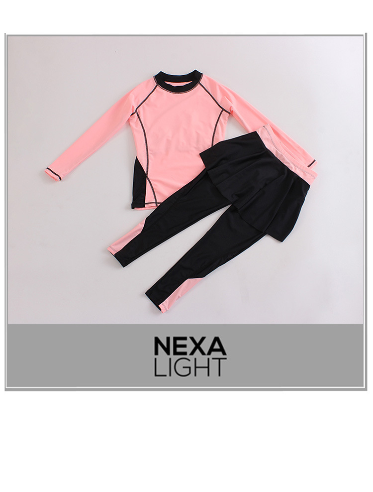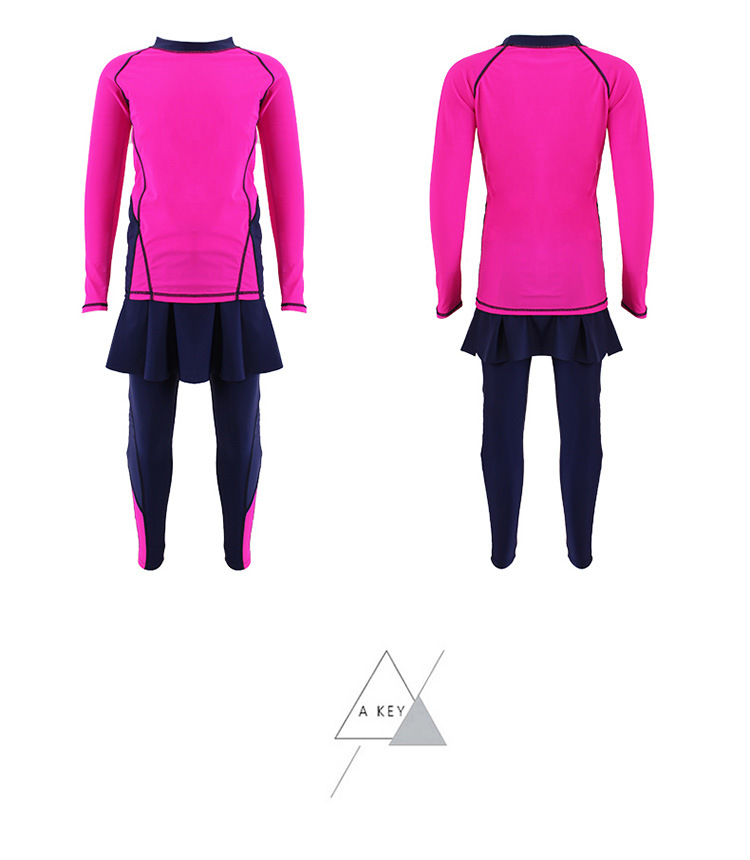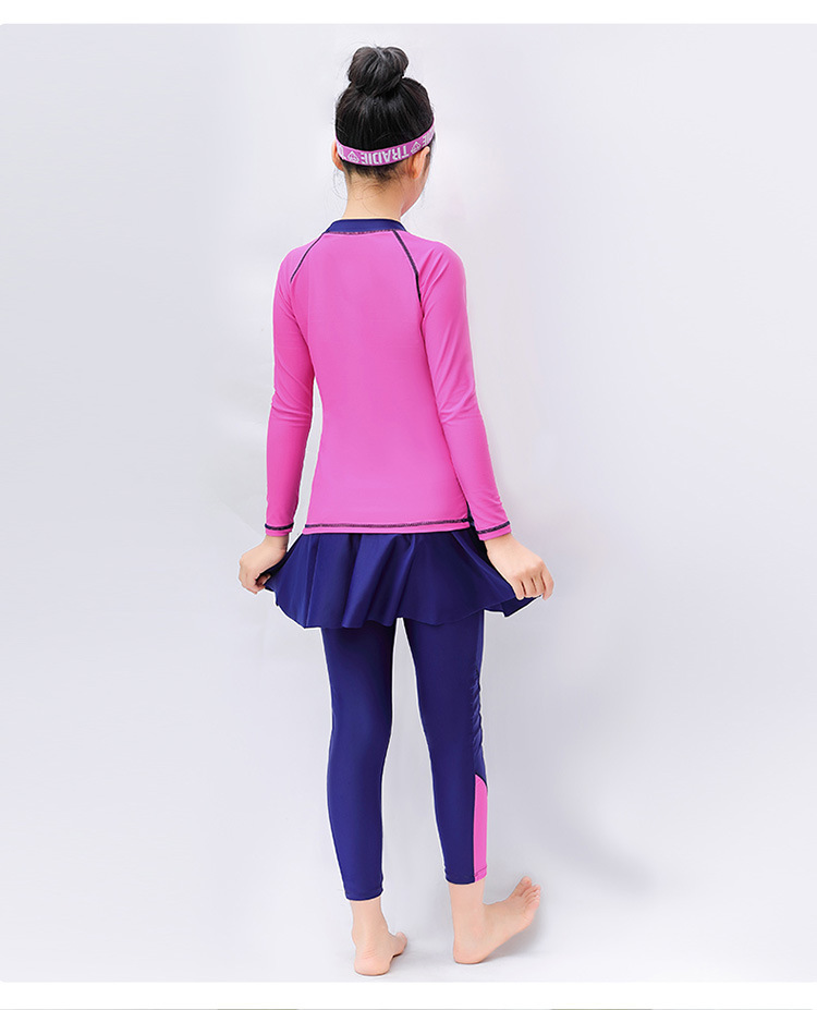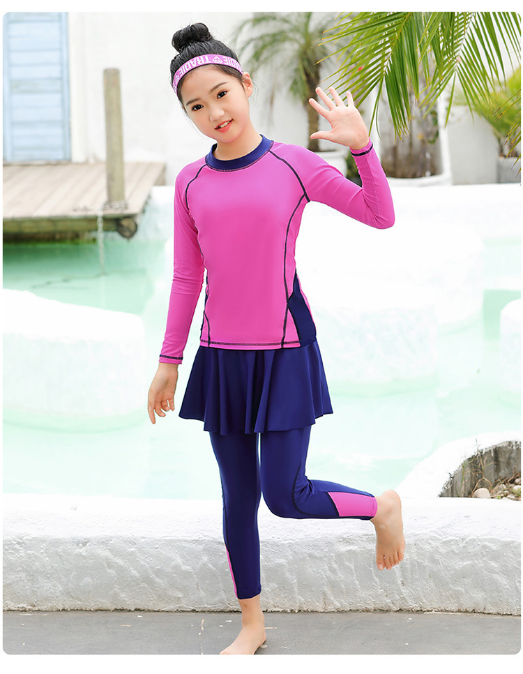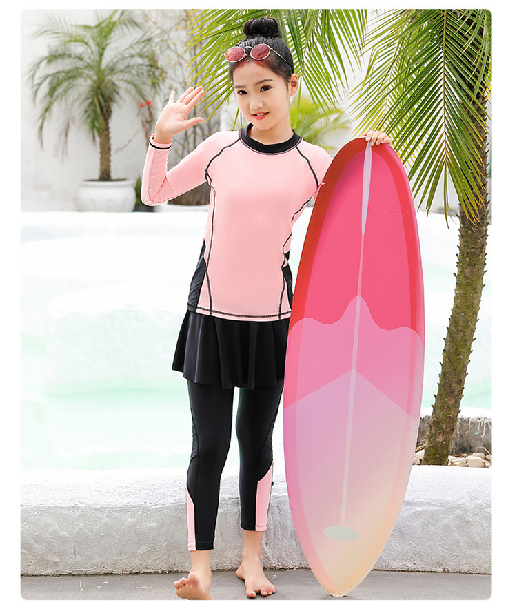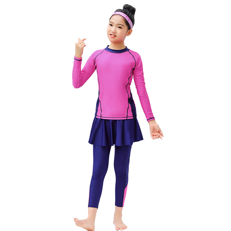 Trissass 2023 새로운 어린이 스플릿 스커트 스타일 여아 수영복 단색 스포츠 큰 어린이 긴 소매 바지