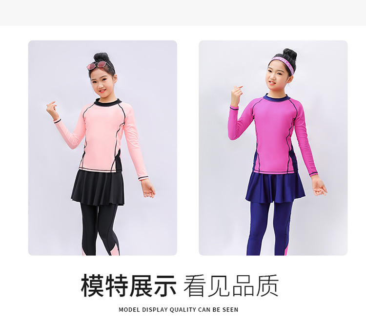Trissass 2023 새로운 어린이 스플릿 스커트 스타일 여아 수영복 단색 스포츠 큰 어린이 긴 소매 바지스토어 가기