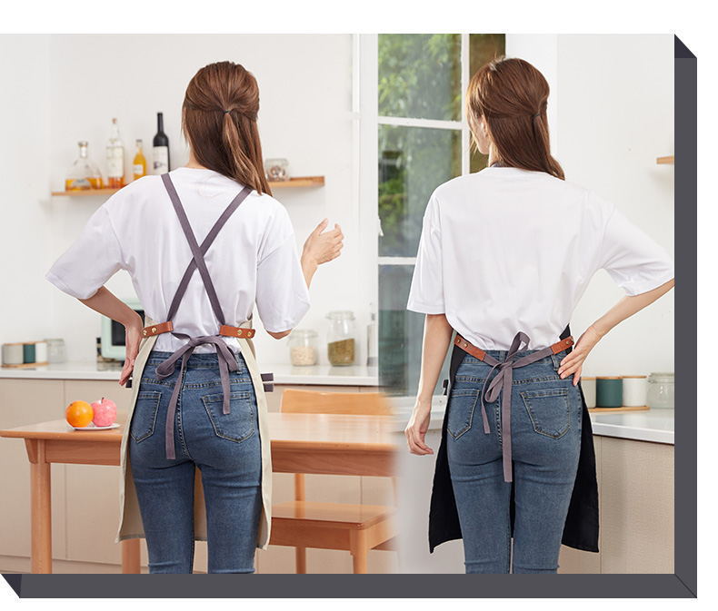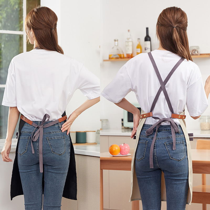 벨트 캔버스 앞치마 인쇄 자수 단어 광고 앞치마 슈퍼마켓 카페 어깨 앞치마 재고 인쇄 가능한 광고스토어 가기