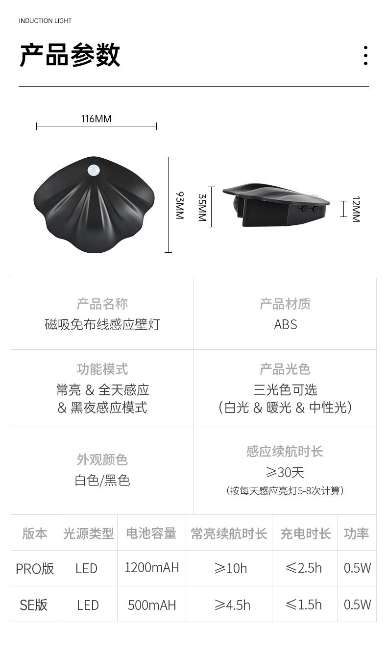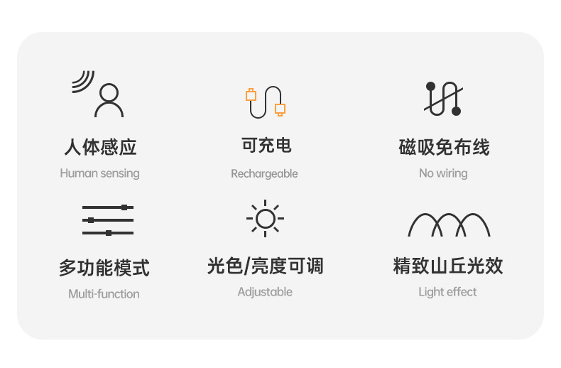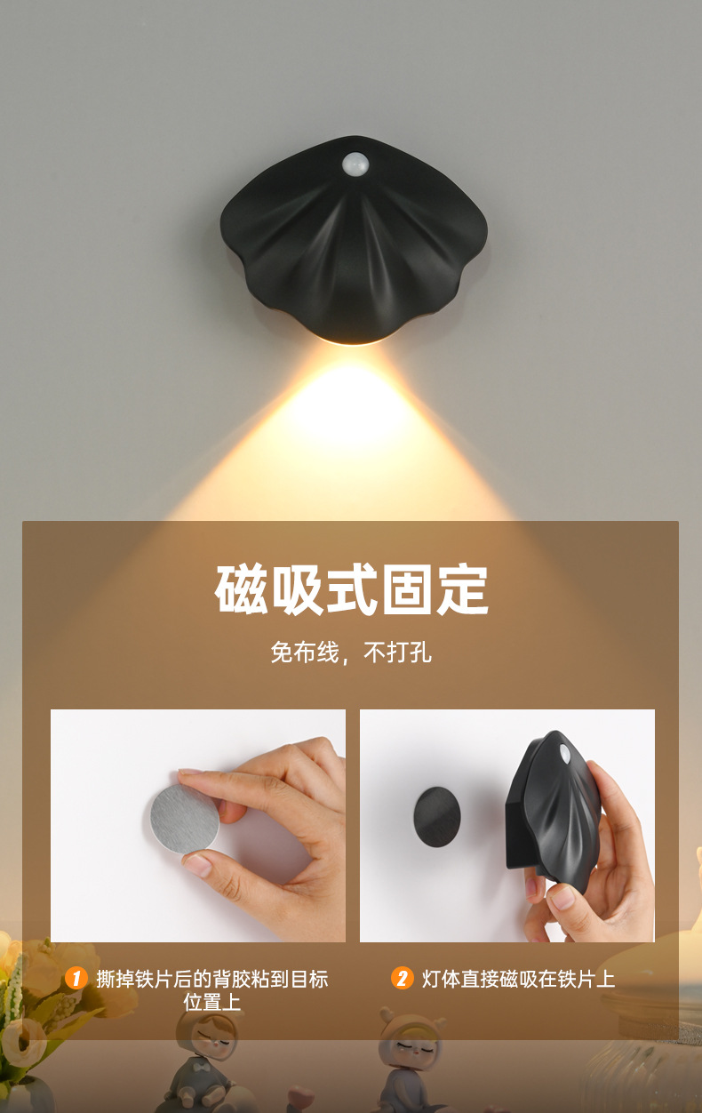 크로스보더 뉴 스마트 led 충전 인체 유도 등 야간 조명 배선 프리 자기 옥내 벽등 도어램프스토어 가기