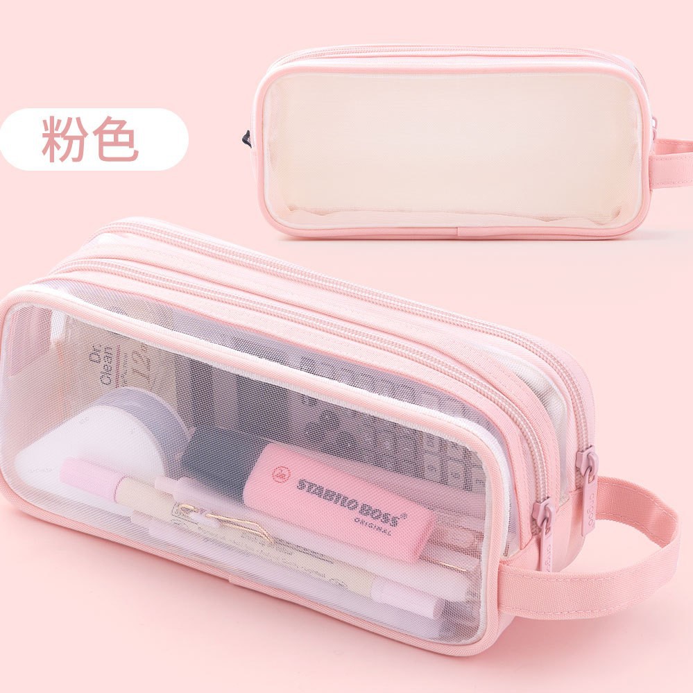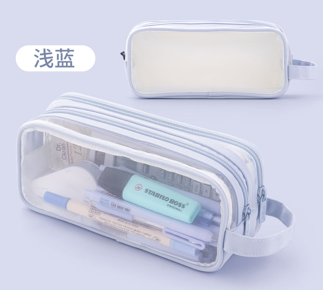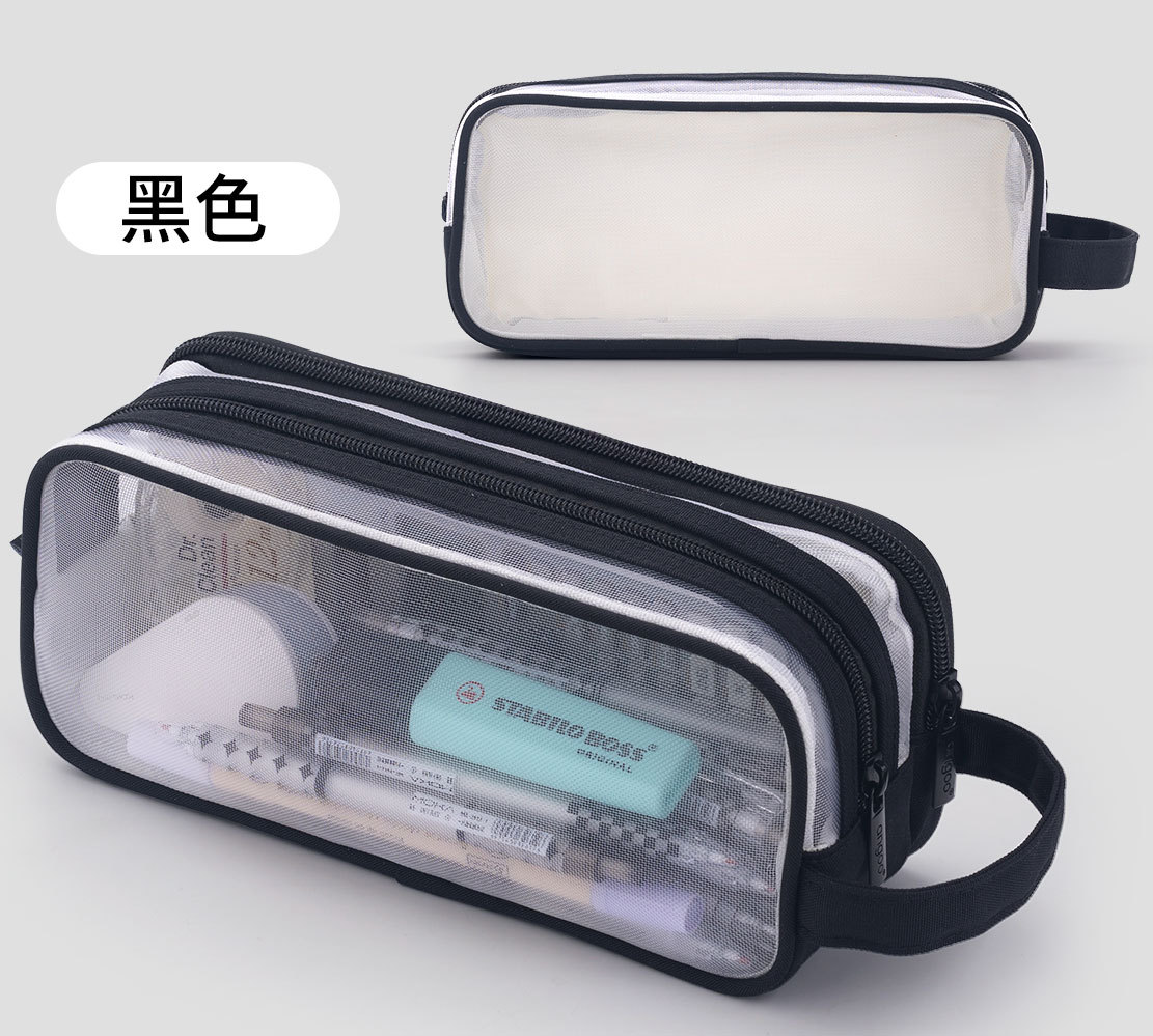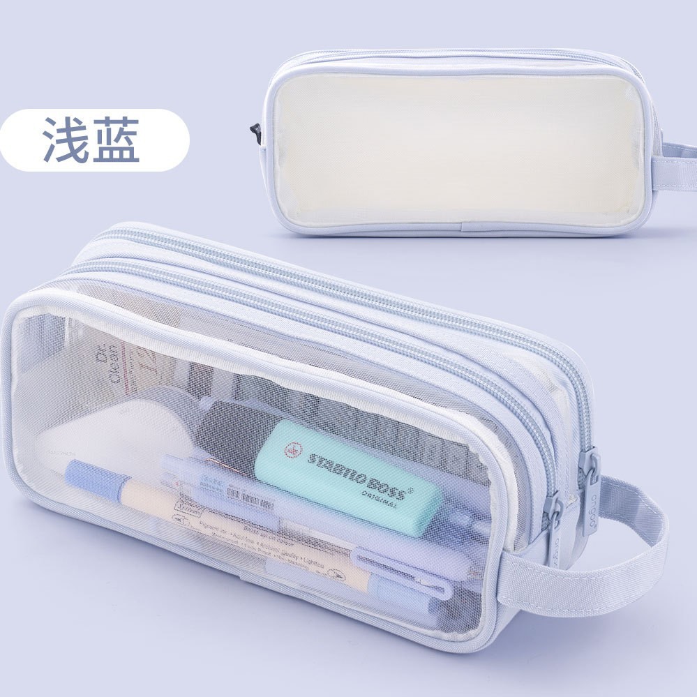Anke 투명 메쉬 연필 가방 휴대용 학생 시험 연필 가방 소년 소녀 대용량 문구 보관 간단한 필통스토어 가기