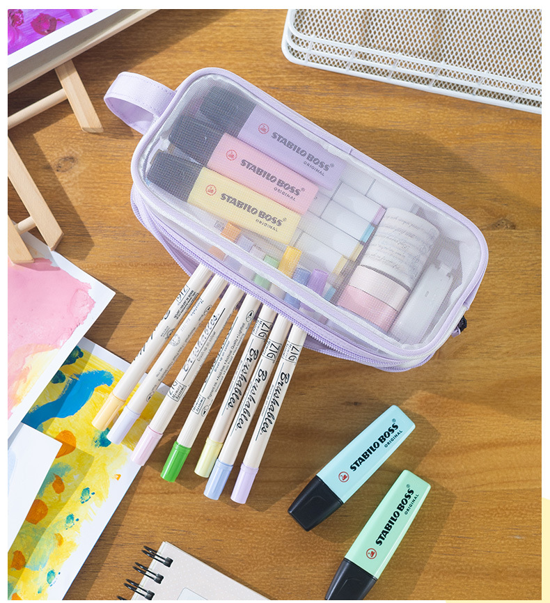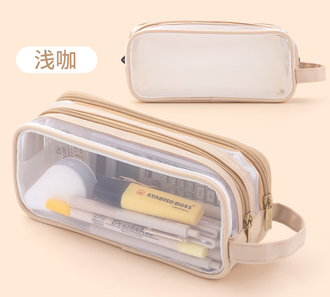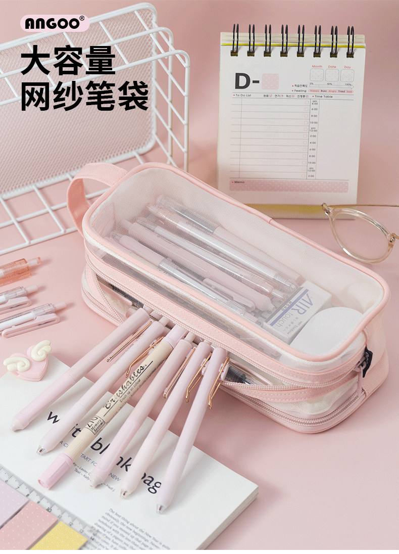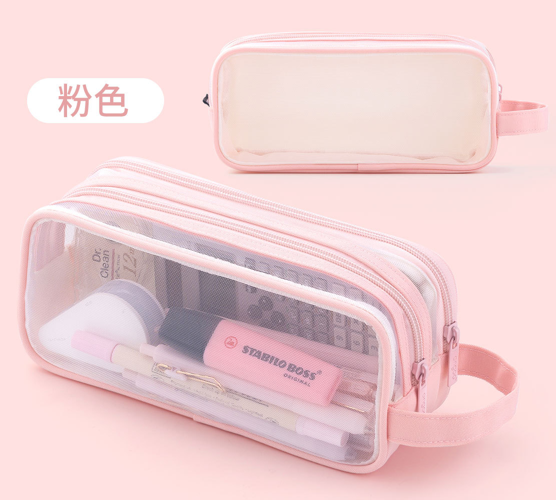 Anke 투명 메쉬 연필 가방 휴대용 학생 시험 연필 가방 소년 소녀 대용량 문구 보관 간단한 필통스토어 가기