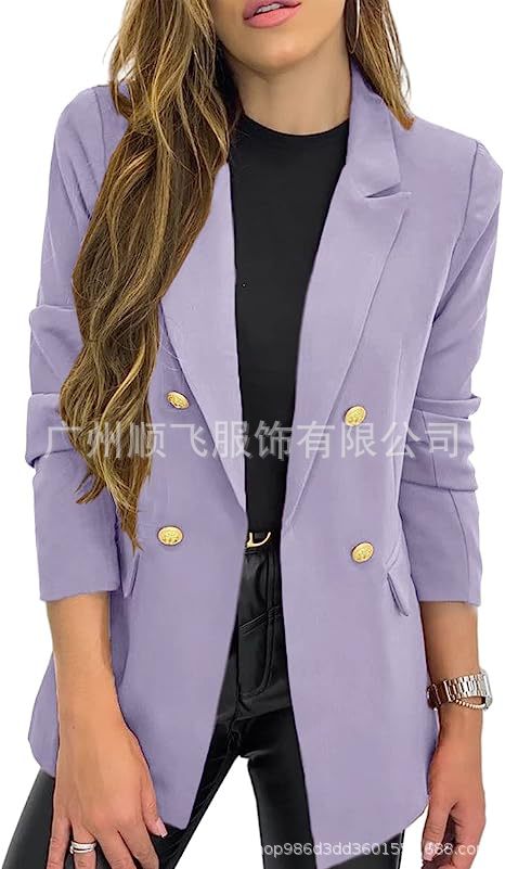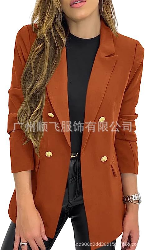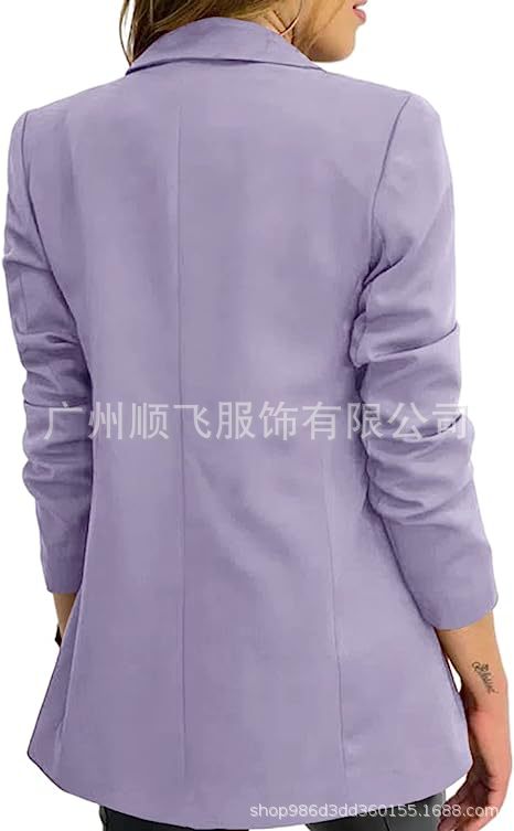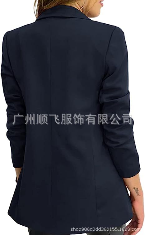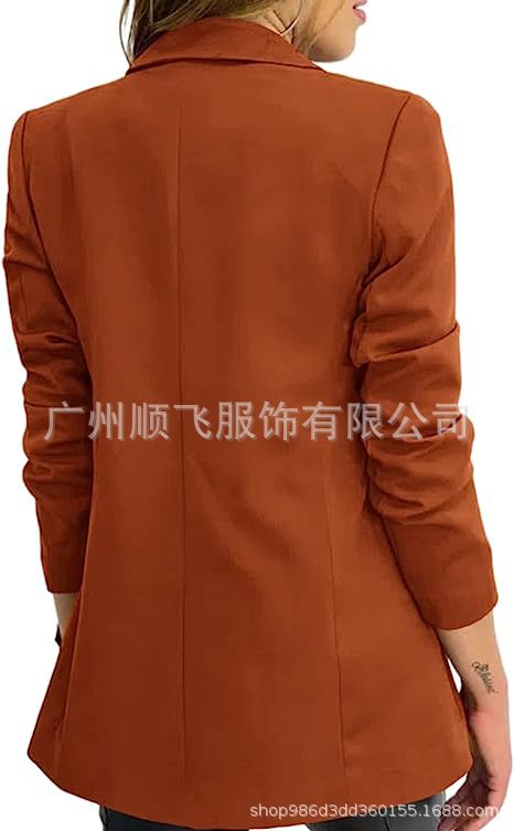 2023 아마존 대외 무역 크로스 국경 새로운 작은 세트 재킷 여자의 단색 캐주얼 긴 소매 옷깃 단추 재킷스토어 가기