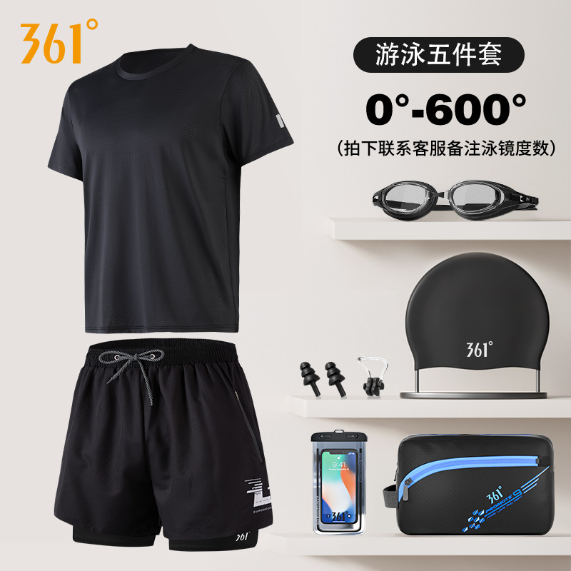 • 블랙 [수영복 + 수영 트렁크 5 개 + 수영 모자 + 수영 고글 + 수영 가방 + 방수 가방]