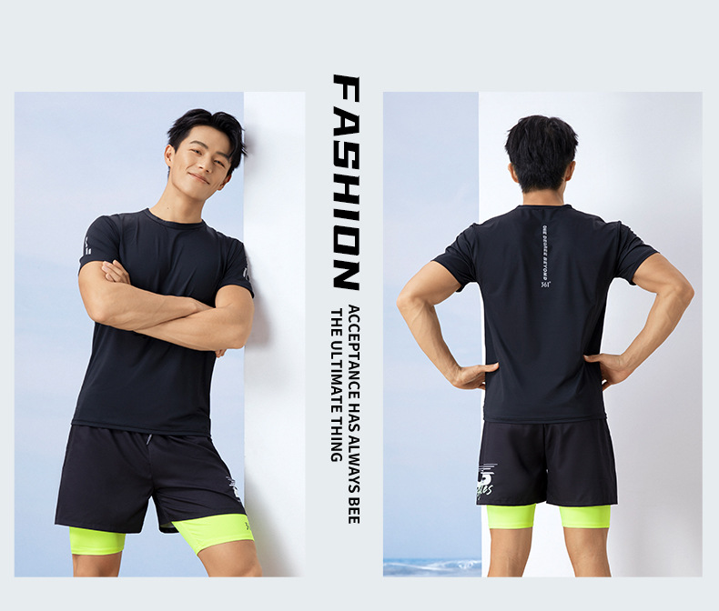 361 수영복 남성용 탑 남성용 느슨한 당황 방지 속건 수영복 소년과 청소년을위한 수영 트렁크 세트 장비