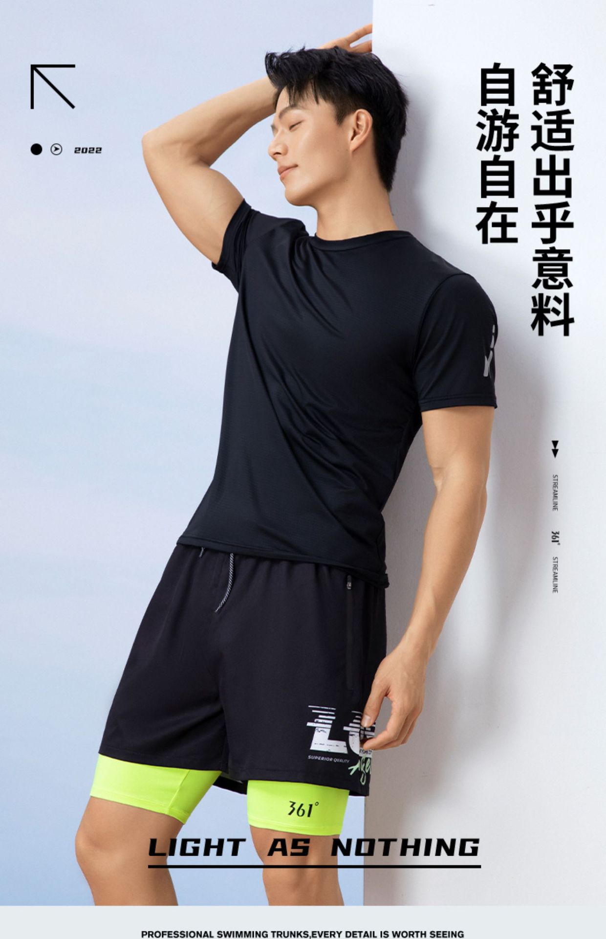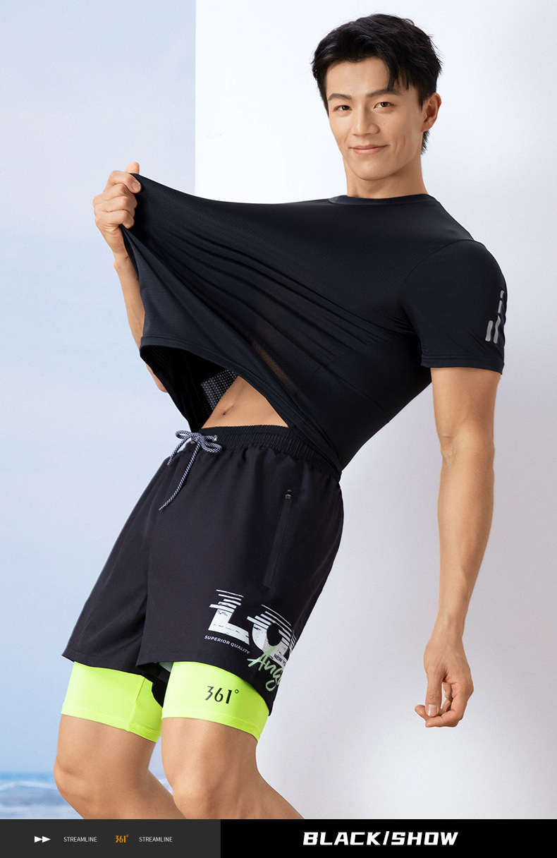 361 수영복 남성용 탑 남성용 느슨한 당황 방지 속건 수영복 소년과 청소년을위한 수영 트렁크 세트 장비스토어 가기