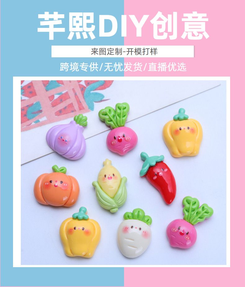 야채 아기 만화 밝은 수제 DIY 크림 접착제 수제 휴대 전화 케이스 머리핀 보석 재료 수지 액세서리스토어 가기
