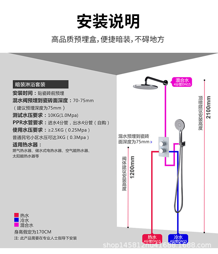 숨겨진 샤워 세트 샤워 숨겨진 벽형 레인 샤워 바디 임베디드 부품 미세 구리 단순 북유럽 단순 화이트스토어 가기