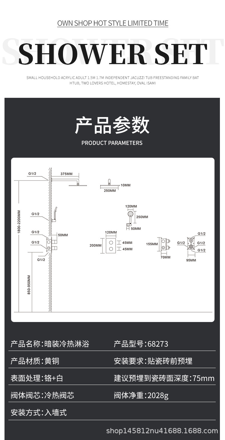 숨겨진 샤워 세트 샤워 숨겨진 벽형 레인 샤워 바디 임베디드 부품 미세 구리 단순 북유럽 단순 화이트