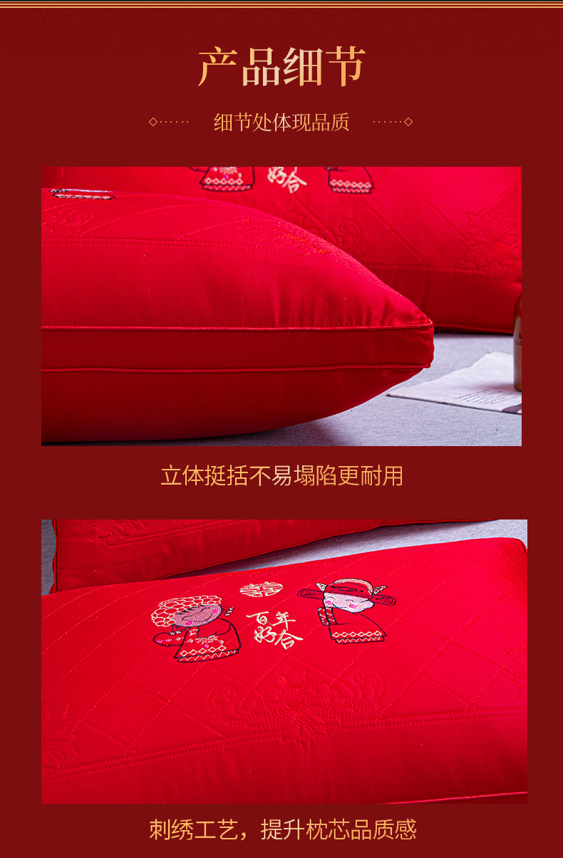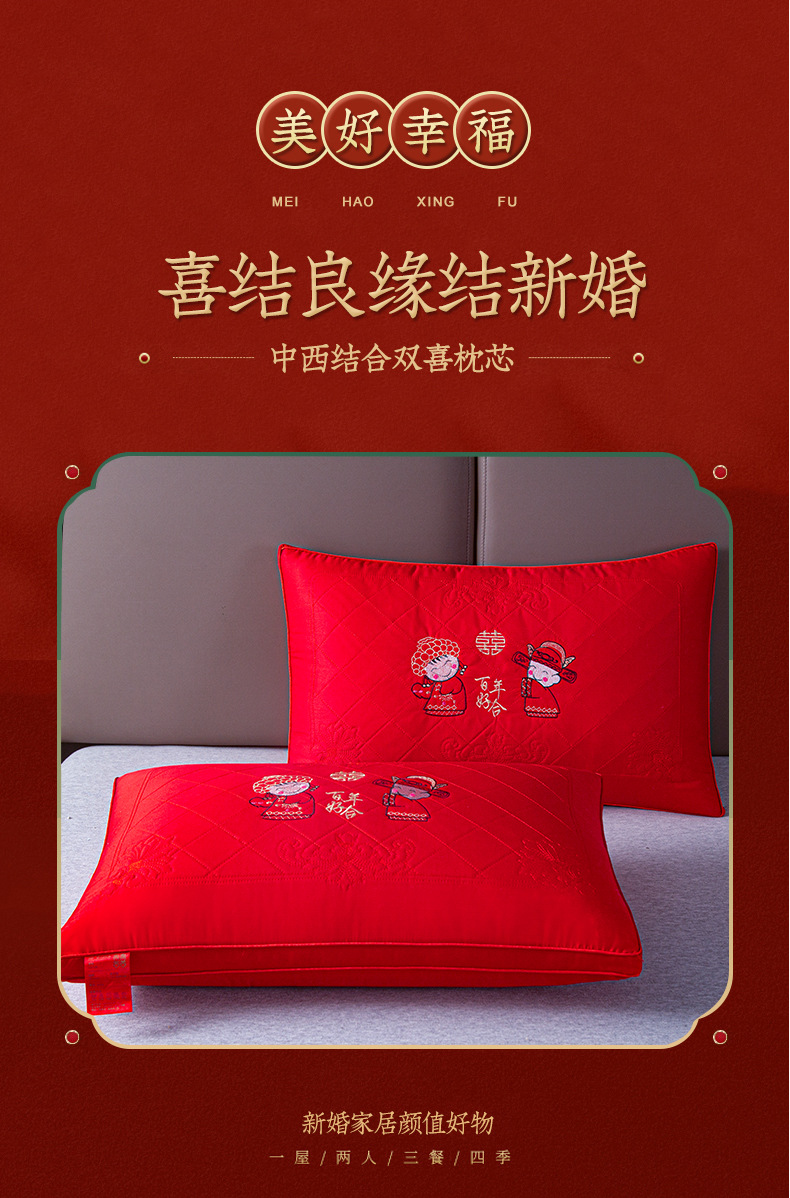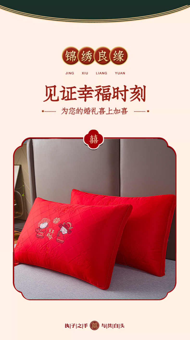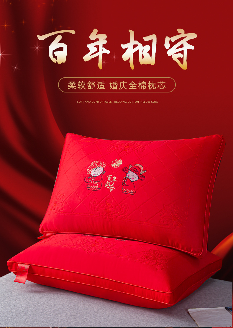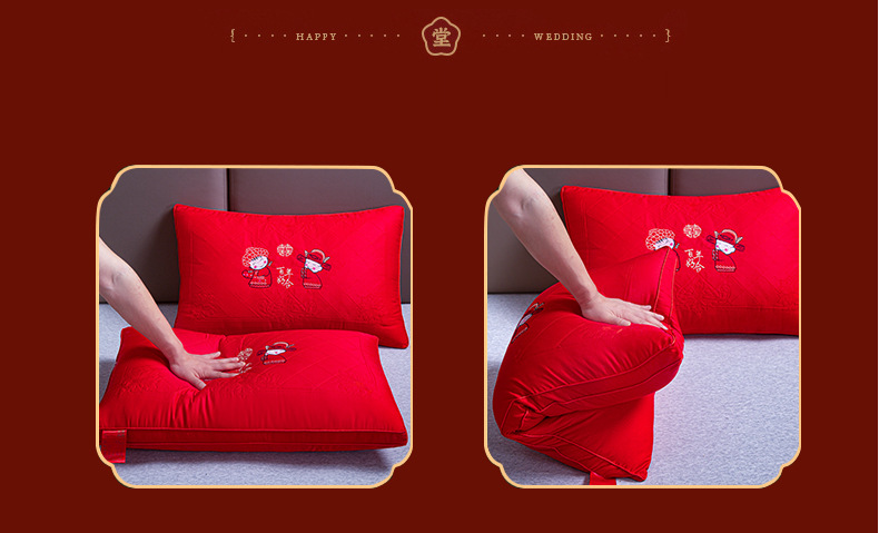 난통 홈 텍스타일 면 웨딩 베개 큰 빨간색 축제 자수 베개 코어 동반 웨딩 홈 웨딩 베개 제조 업체 도매스토어 가기