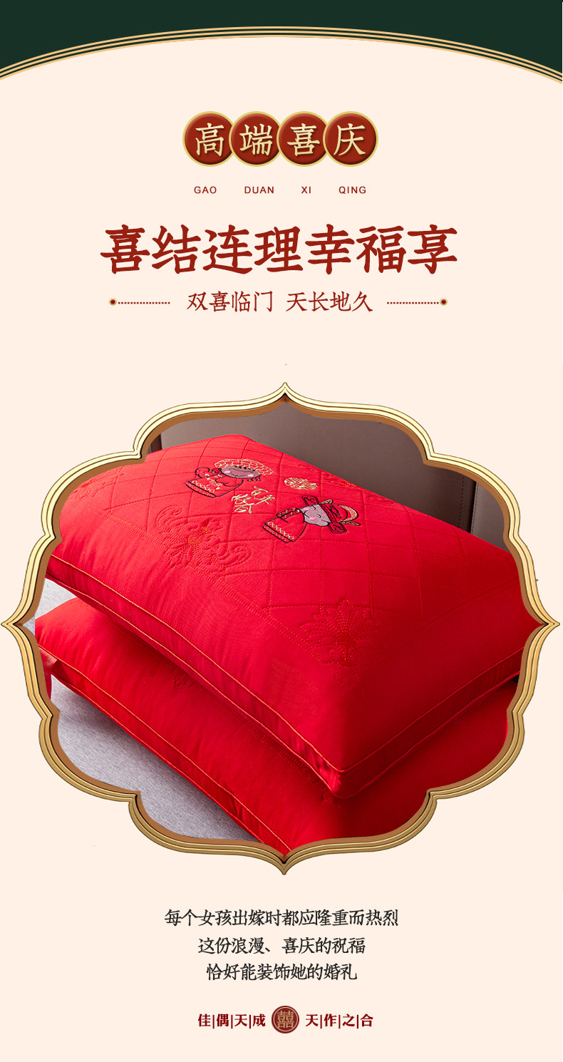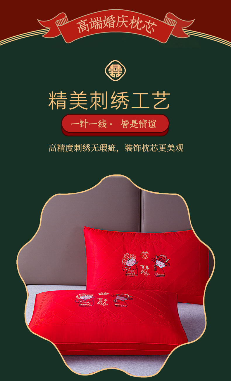 난통 홈 텍스타일 면 웨딩 베개 큰 빨간색 축제 자수 베개 코어 동반 웨딩 홈 웨딩 베개 제조 업체 도매