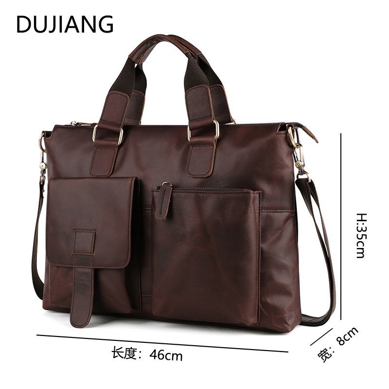 국경 간 남성용 정품 가죽 서류 가방 다기능 대용량 노트북 가방 통근 복고풍 크로스 바디 백 남성용 가방