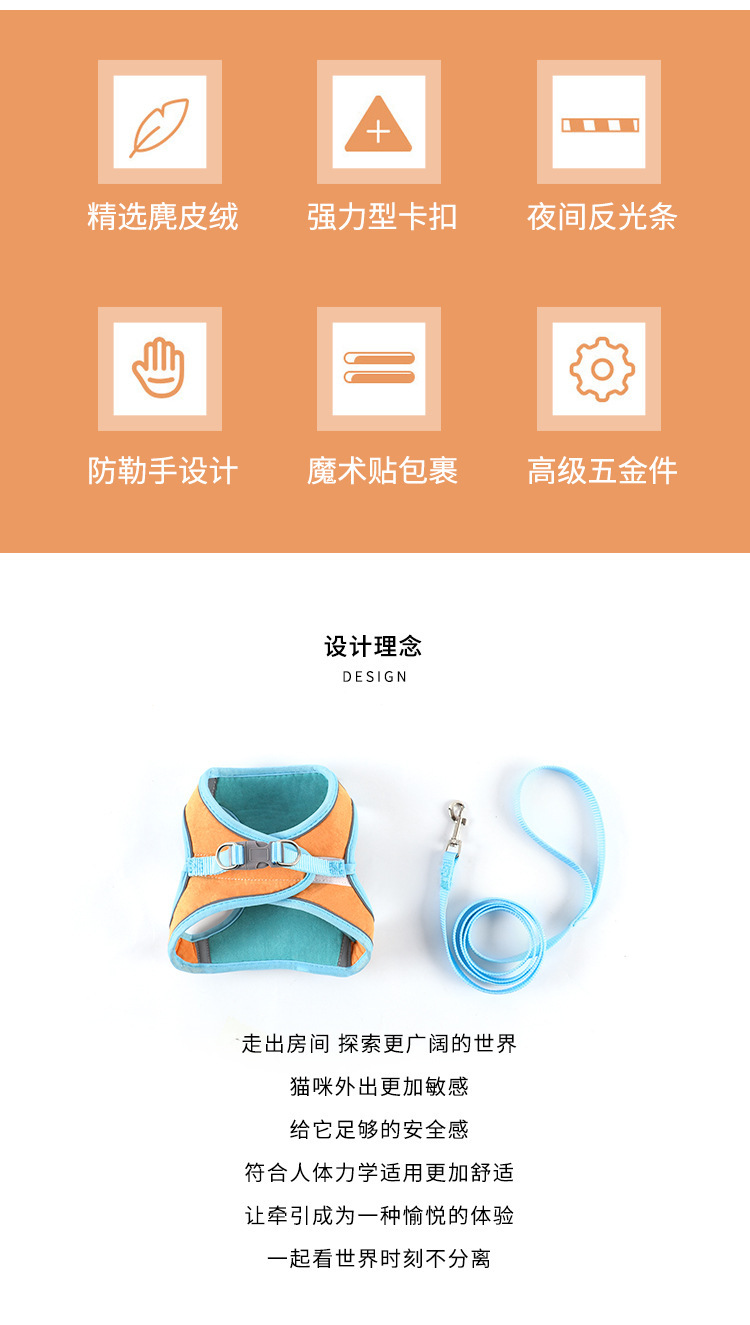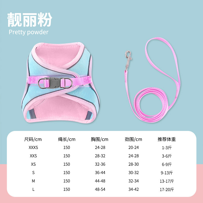 고양이 조끼 견인 로프 가슴 스트랩 안티 브레이크 귀여운 외출 개 견인 로프 고양이와 개를 걷기위한 특수 로프