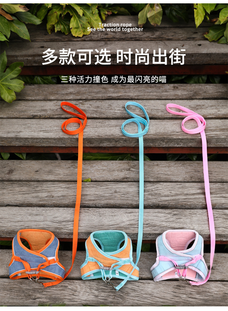 고양이 조끼 견인 로프 가슴 스트랩 안티 브레이크 귀여운 외출 개 견인 로프 고양이와 개를 걷기위한 특수 로프스토어 가기