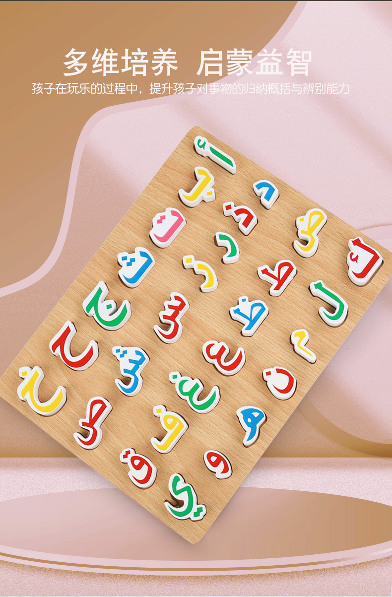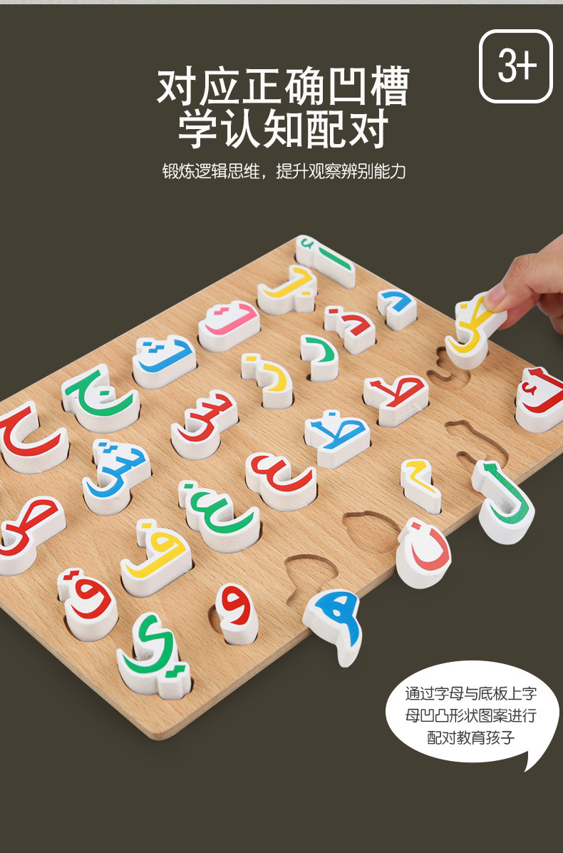 아랍어 인지 퍼즐, 아랍어 알파벳 보드, 나무 알파벳 보드, 손잡이 보드, 퍼즐 보드, 어린이 장난감