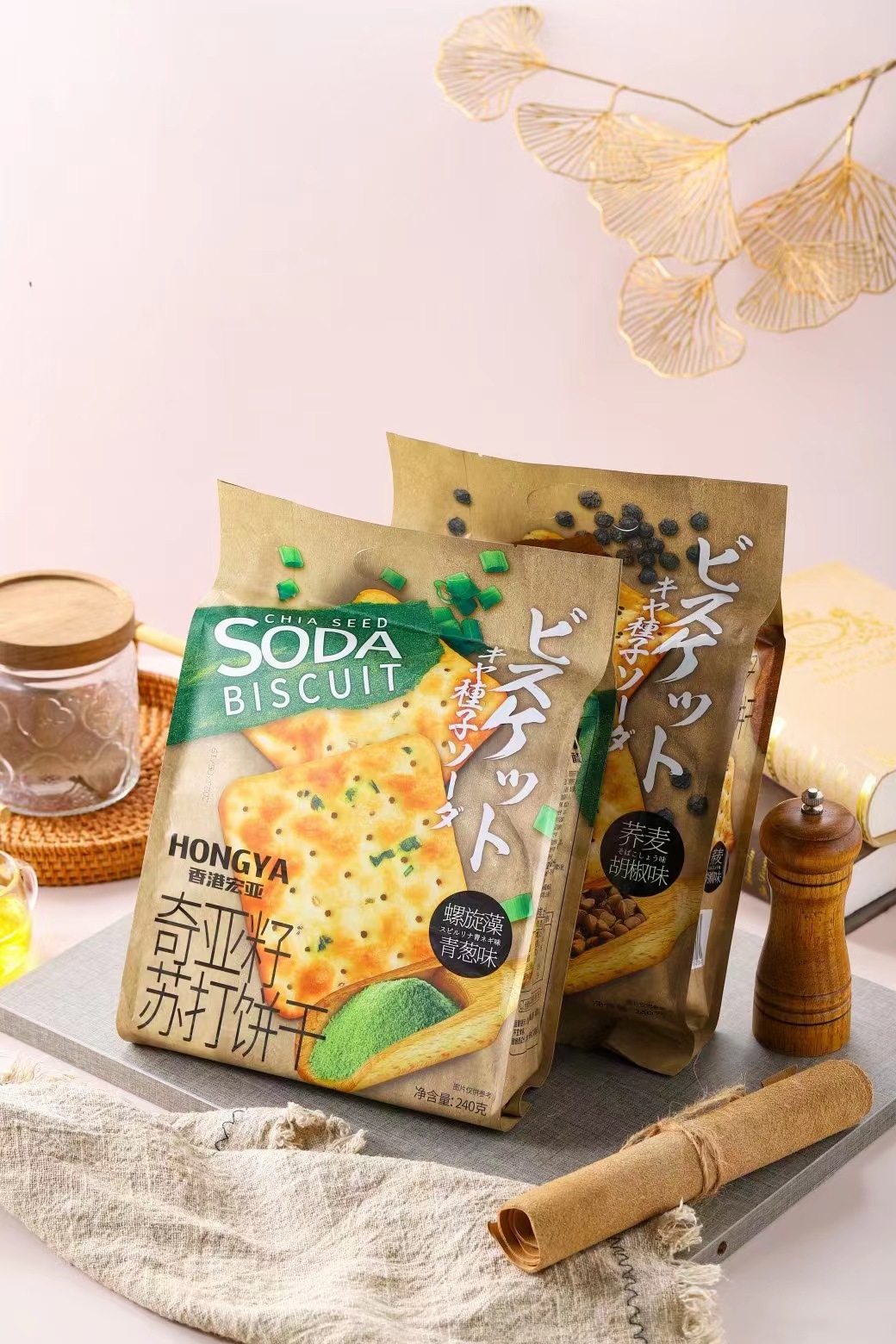 홍콩 Hongya 240g 치아 씨앗 소다 비스킷 가방 사무실 캐주얼 간식 짠 비스킷 도매스토어 가기