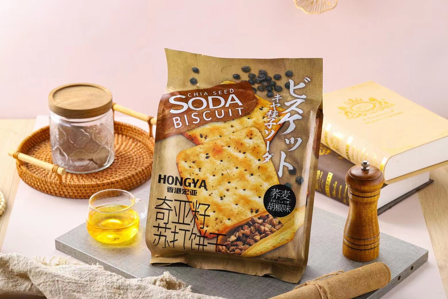 홍콩 Hongya 240g 치아 씨앗 소다 비스킷 가방 사무실 캐주얼 간식 짠 비스킷 도매