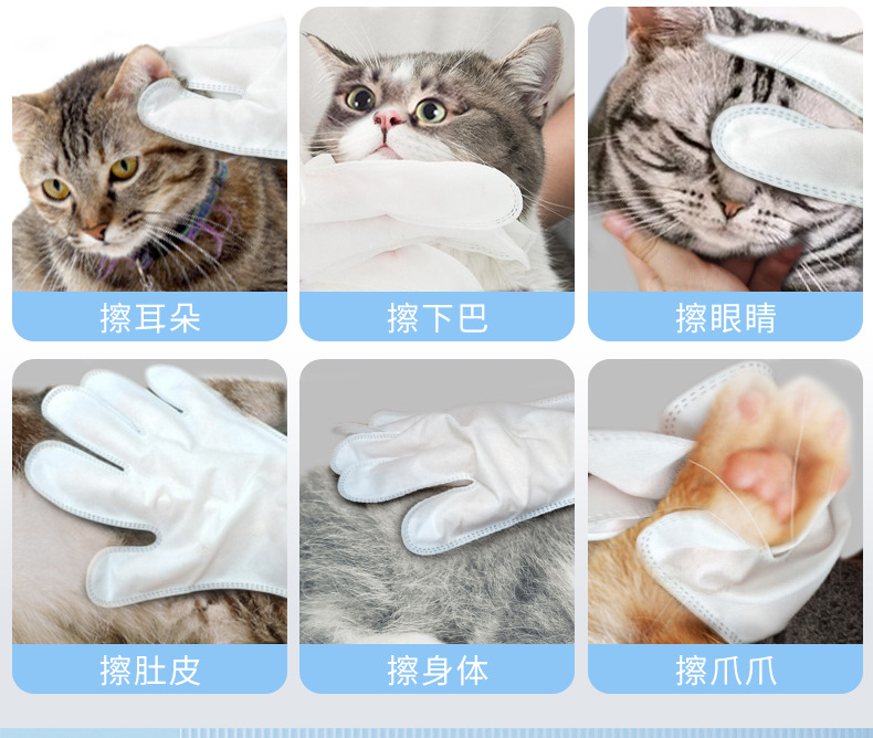 바오라이멜루 애완동물 청소 장갑 5개입 스파 고양이 물티슈 건식 세척 강아지 고양이용 히알루론산스토어 가기