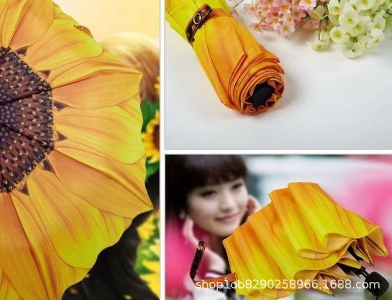 해바라기 접는 우산 실버 접착제 태양 보호 자외선 차단 태양 우산 작은 신선한 고등학교 입학 시험 맑은 우산 첫 번째 승리