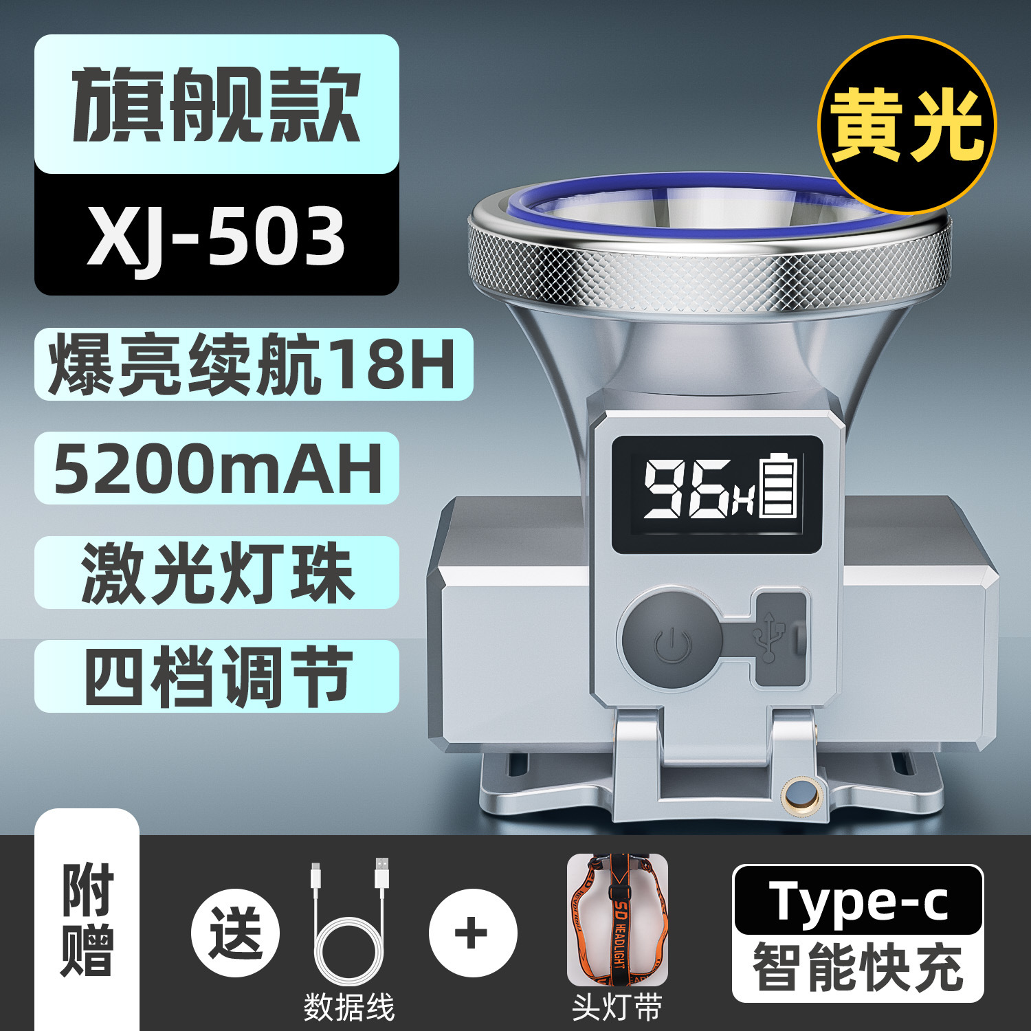 • XJ-7803 블루 레이 낚시 특수 슈퍼 방수 이중 리튬 배터리 수명 8-20 시간