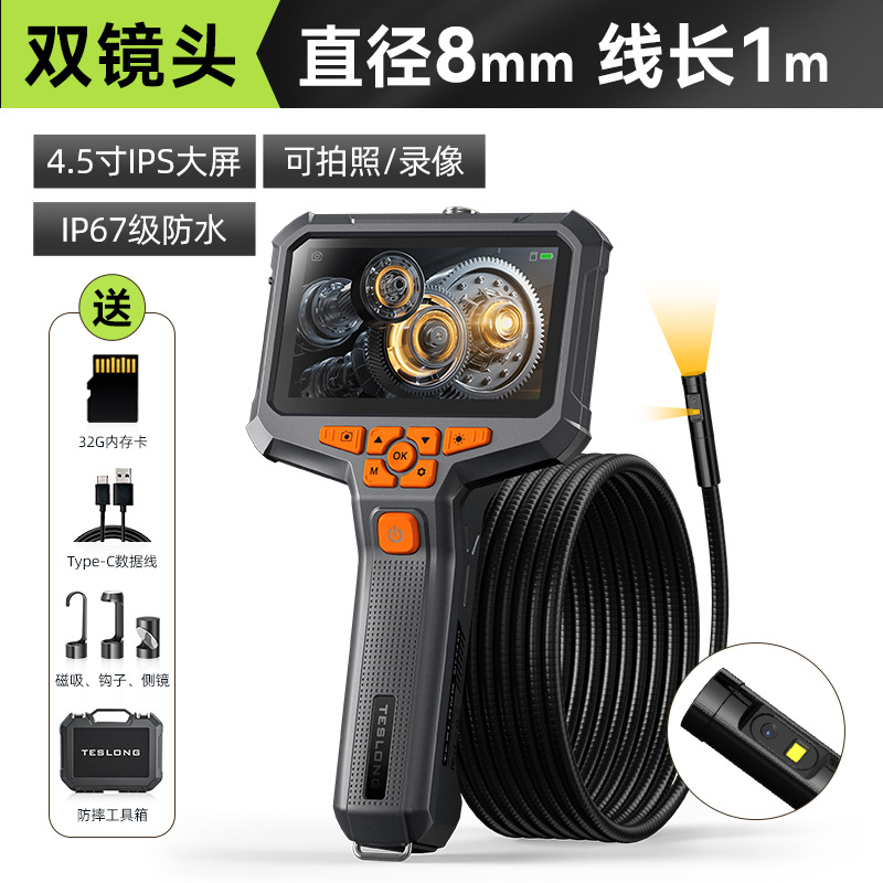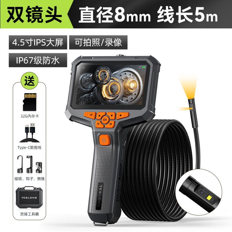 Taishilang NTS430 고화질 방수 휴대용 듀얼 렌즈 산업용 내시경 자동차 파이프라인 감지기 HD