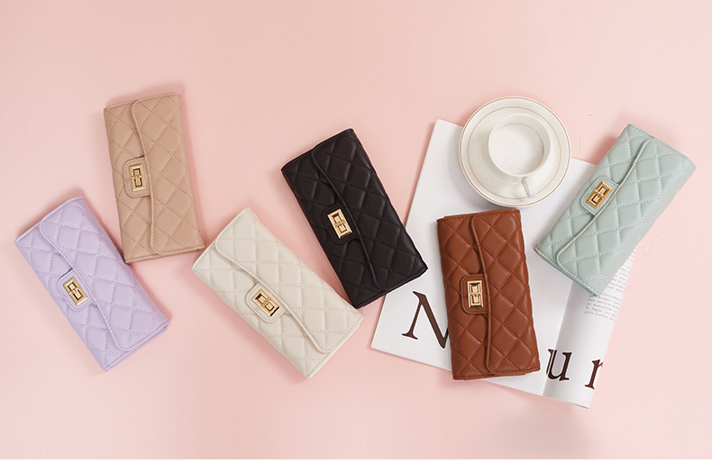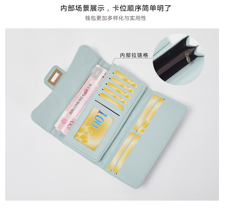 크로스 보더 링 숙녀 지갑 도매 긴 3 배 Pu 가죽 클러치 대용량 동전 지갑 간단한 카드 가방스토어 가기