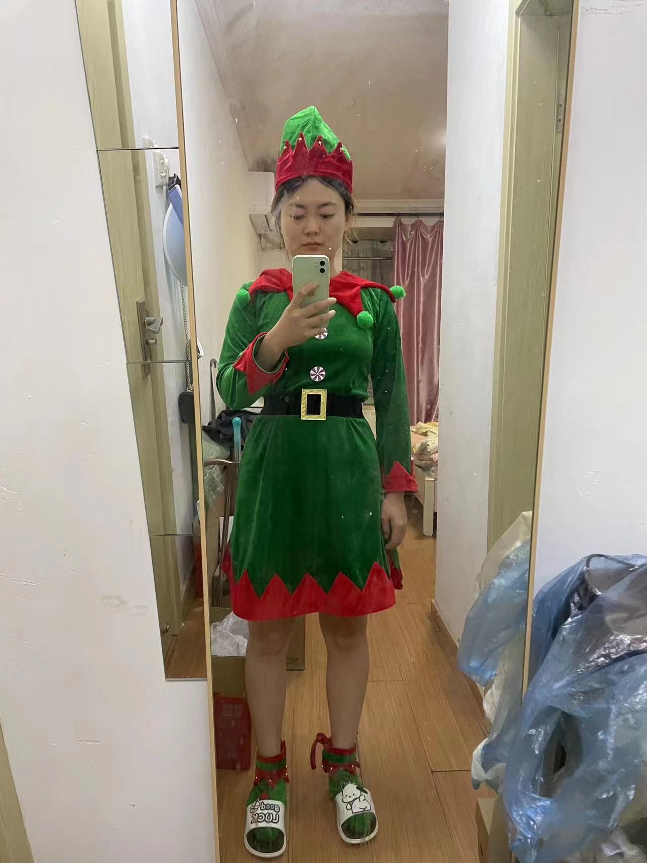 크리스마스 어린이 의상 소년과 소녀 부모 의상 코스프레 귀여운 녹색 엘프 광대 의상 의상스토어 가기