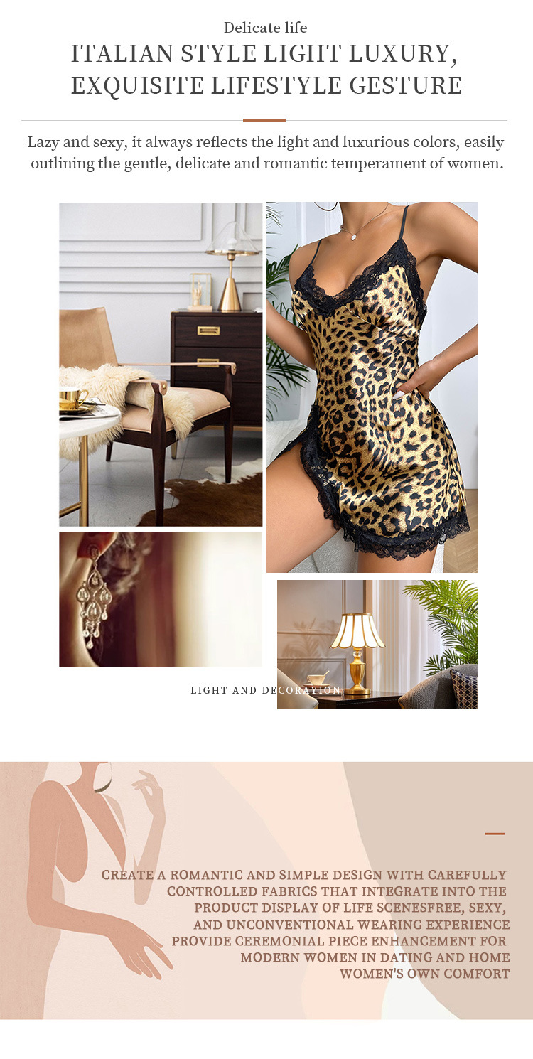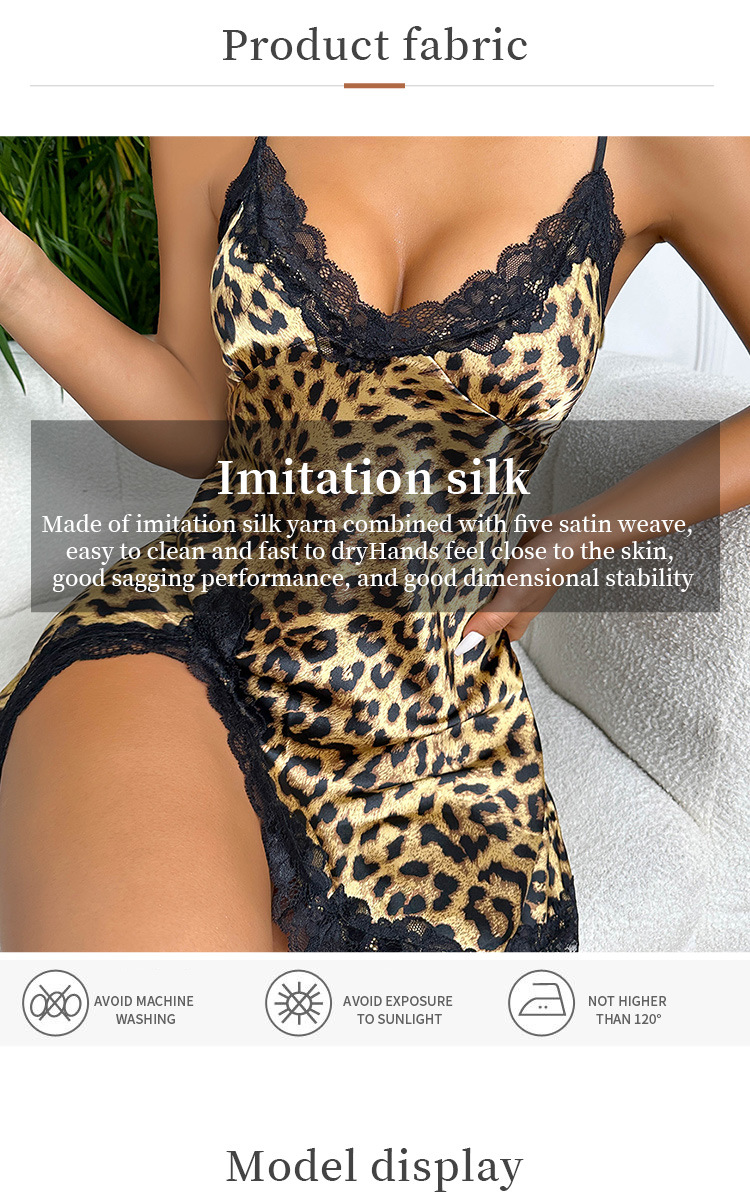 섹시한 레오파드 무늬 잠자는 잠옷 여름 얇은 통기성 슬링 원피스 가정 옷 여성을위한 새로운 얼음 실크 잠옷