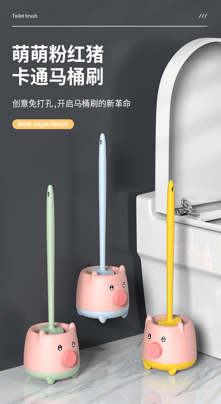 변기 브러시 가정용 새끼 돼지 모양 청소 브러시 벽형 벽걸이 형 플라스틱 변기 브러시스토어 가기