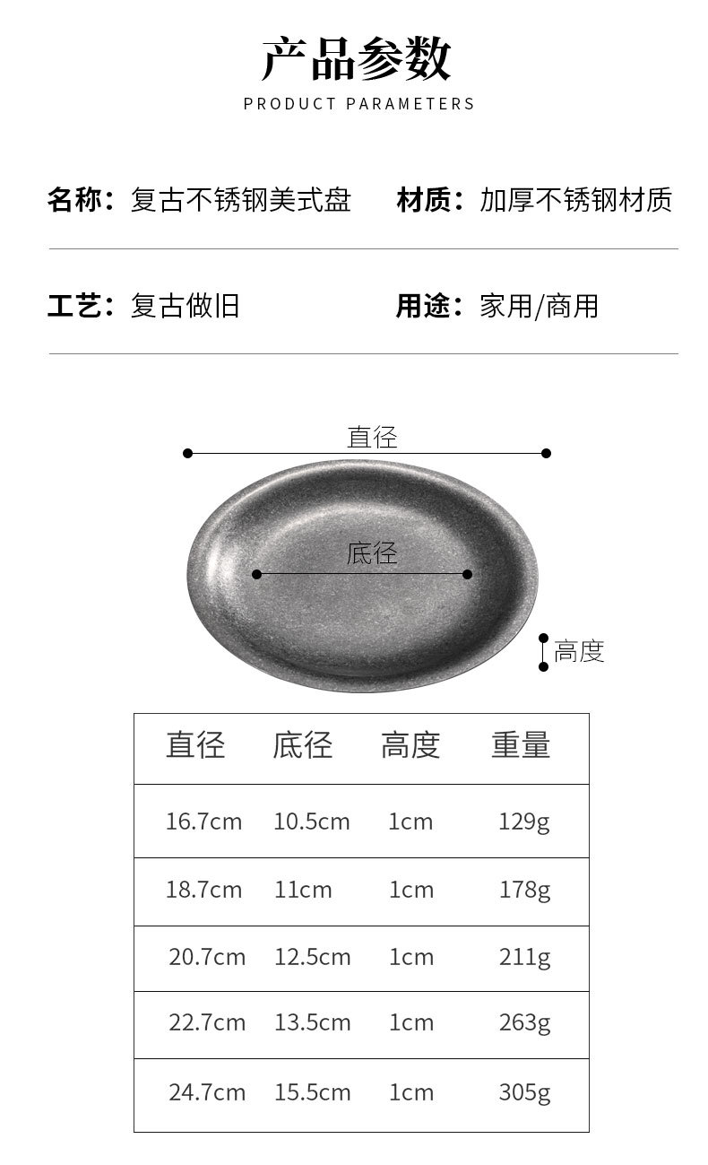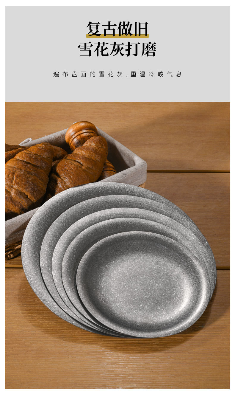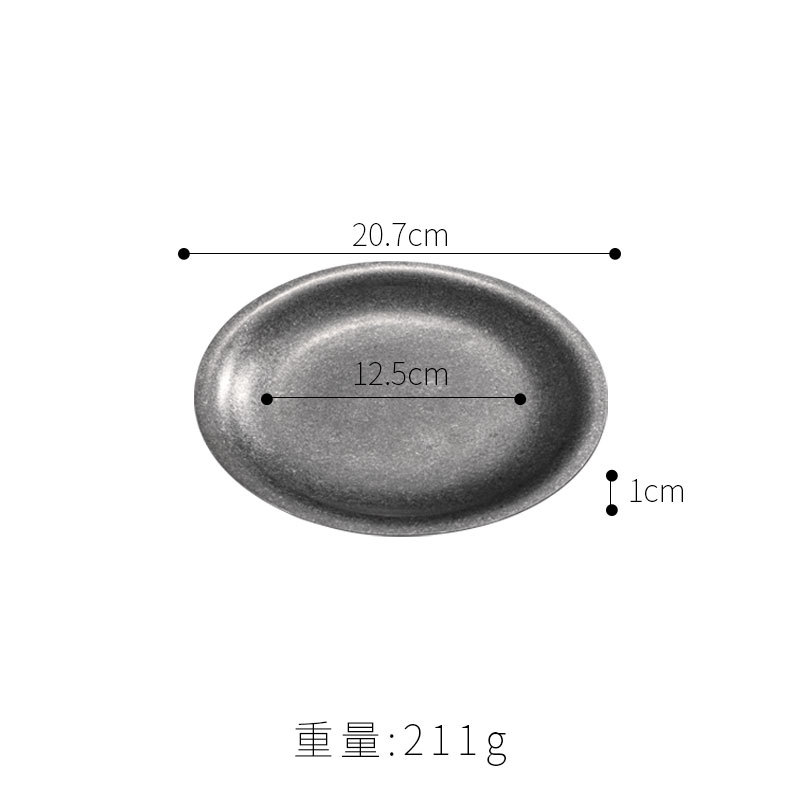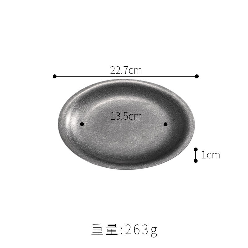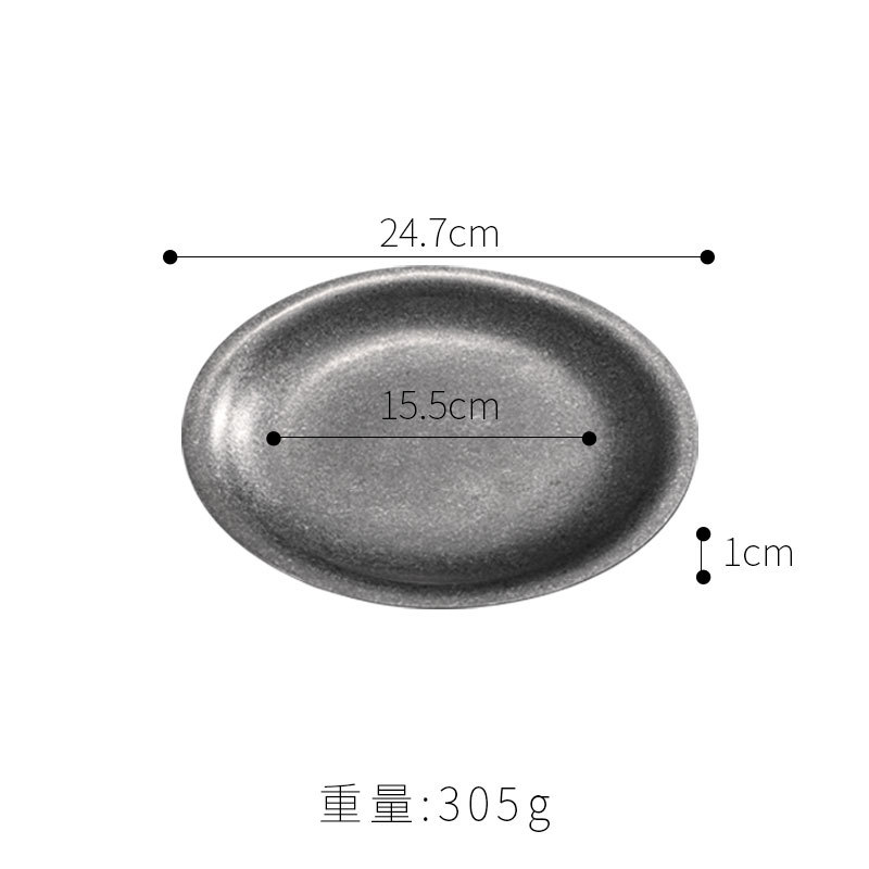 레트로 스테인리스 원형 접시 일본 산업 스타일 인스 빈티지 트레이 디저트 케이크 접시 바베큐 서양식 스테이크 접시