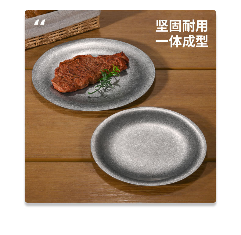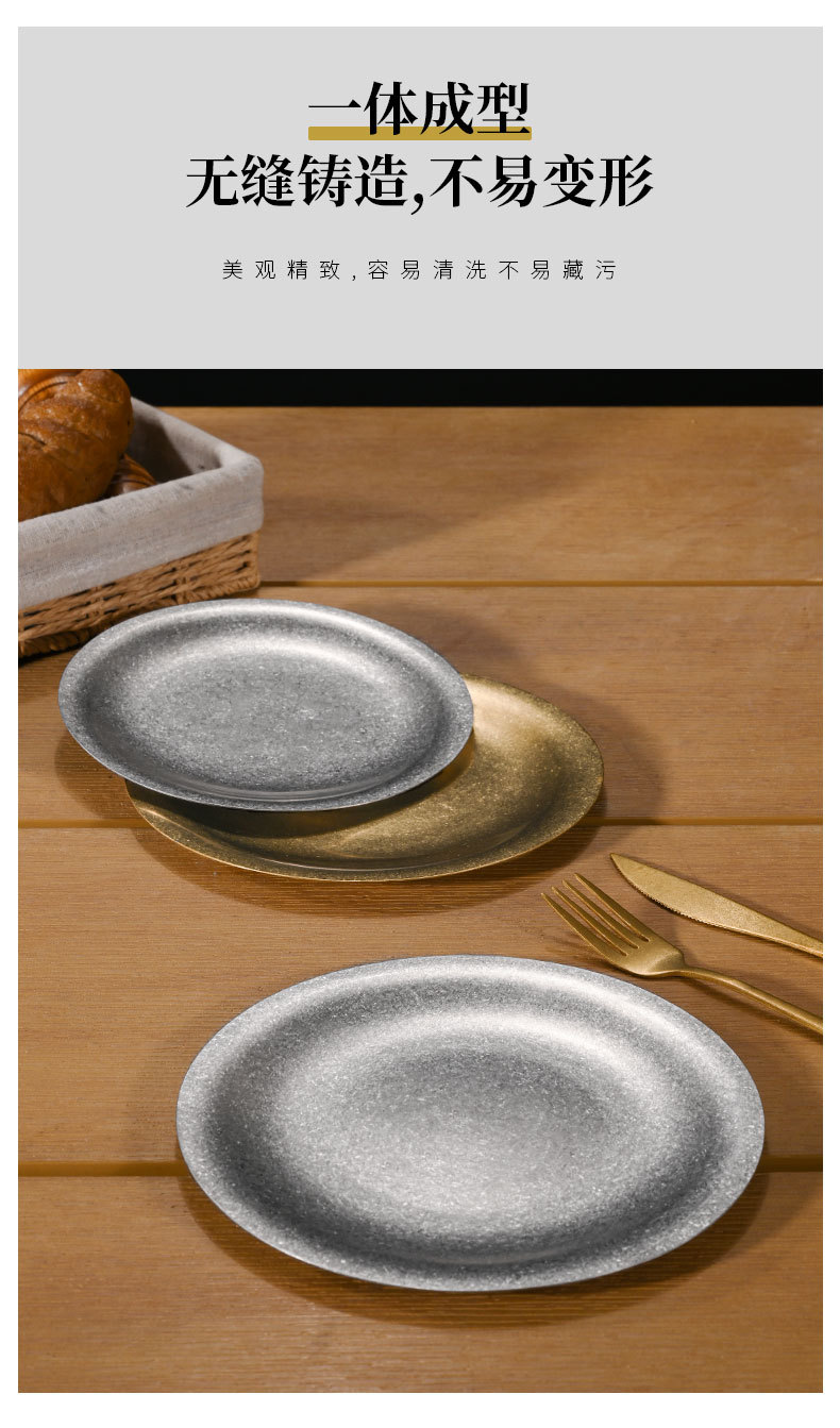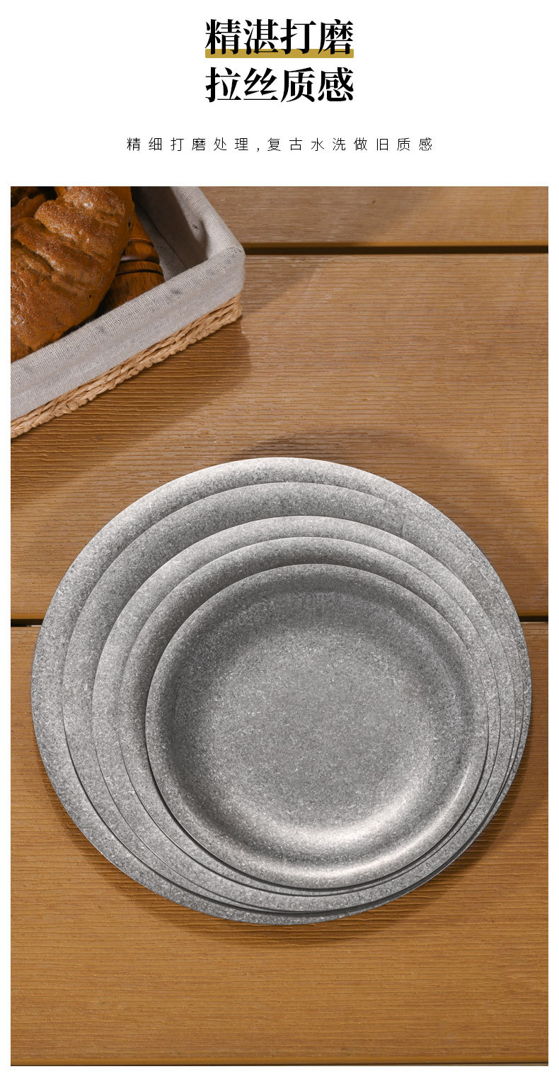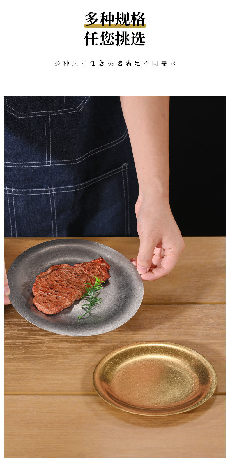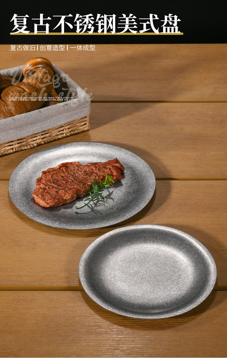 레트로 스테인리스 원형 접시 일본 산업 스타일 인스 빈티지 트레이 디저트 케이크 접시 바베큐 서양식 스테이크 접시스토어 가기