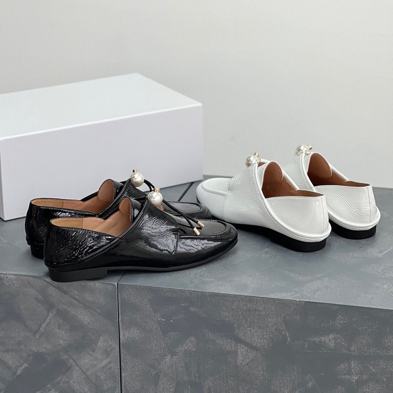 가을의 새로운 * 행 진주 로퍼 스텝 온 힐 슈즈 가죽 캐주얼 슈즈 스텝 온 플랫 슈즈