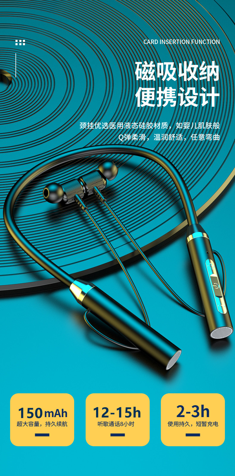 [엄격 선택] 폭발 블루투스 무선 헤드셋 교수형 목 스포츠 인이어 목 교수형 긴 내구성 소스 공장