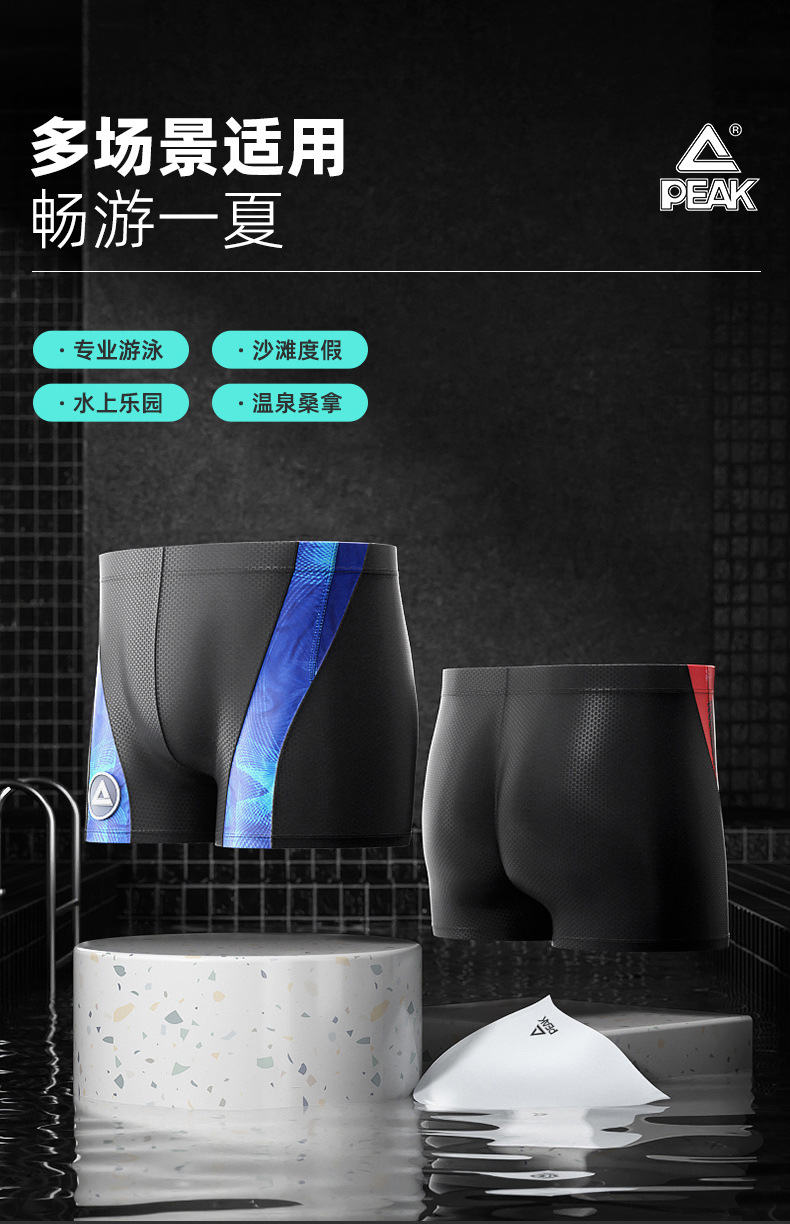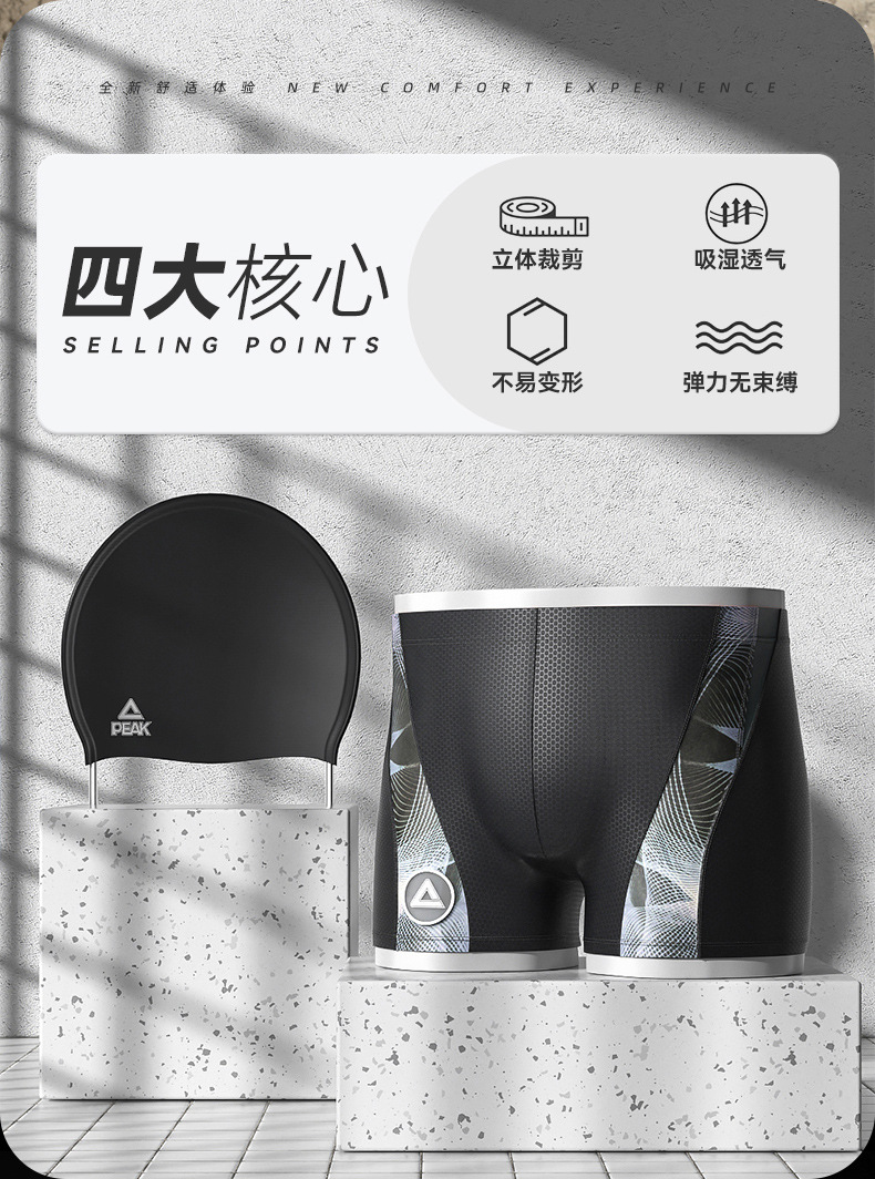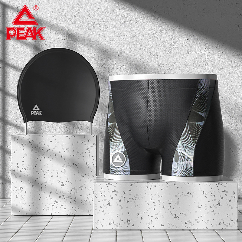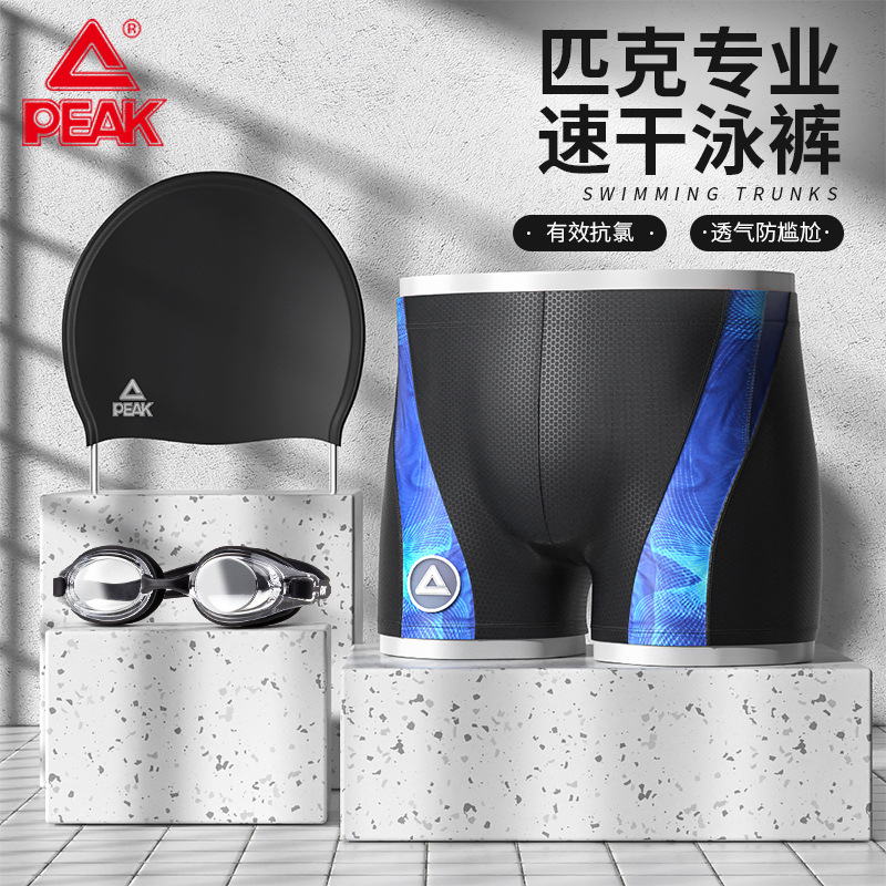PEAK 정품 수영 트렁크, 수영 고글 및 수영 모자 3피스 세트 남성용 당황 방지 나일론 속건성 복서 수영 트렁크 도매스토어 가기