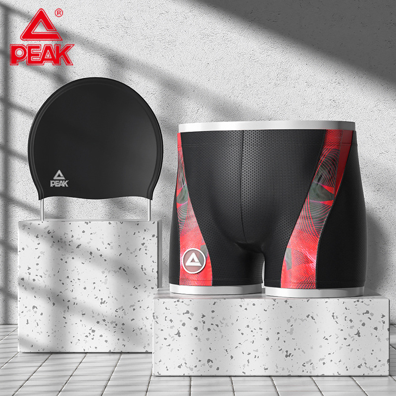 PEAK 정품 수영 트렁크, 수영 고글 및 수영 모자 3피스 세트 남성용 당황 방지 나일론 속건성 복서 수영 트렁크 도매