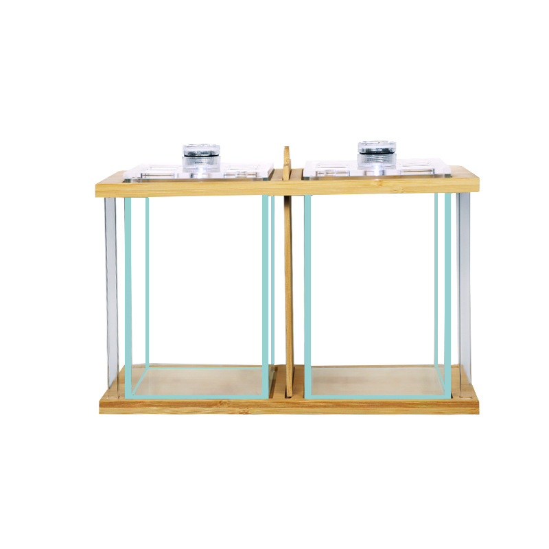 태국 Dou 물고기 이중 행 탱크 뚜껑과 가벼운 데스크탑 미니 Dou 수조가있는 창조적 인 대나무 및 나무 생태 슈퍼 화이트 어항