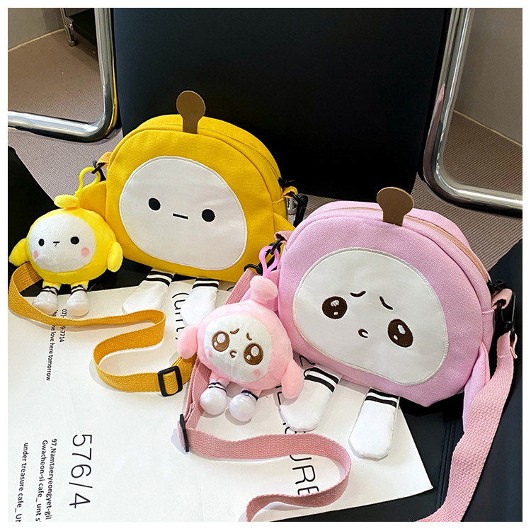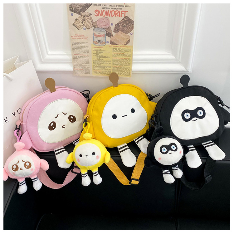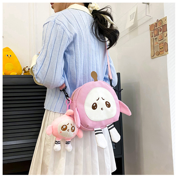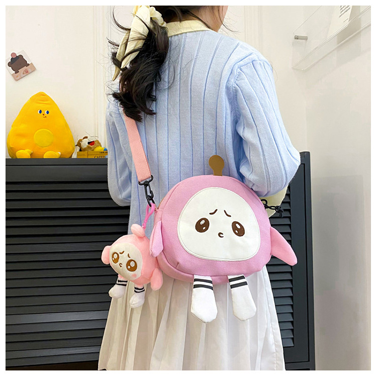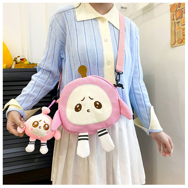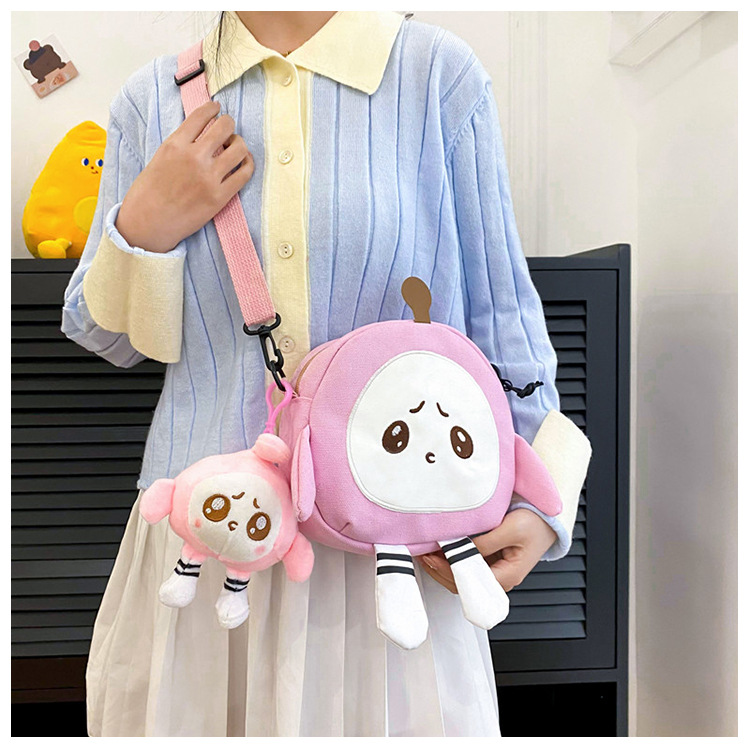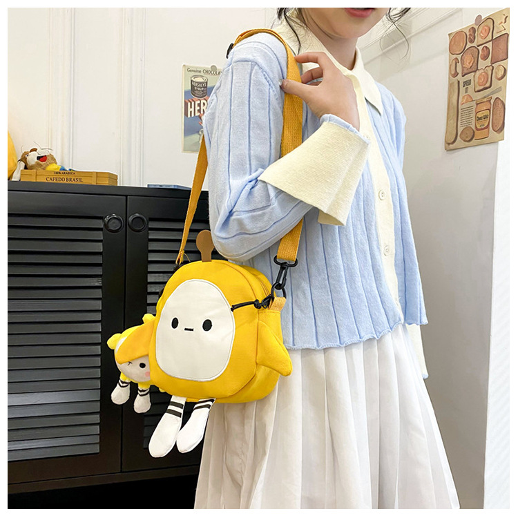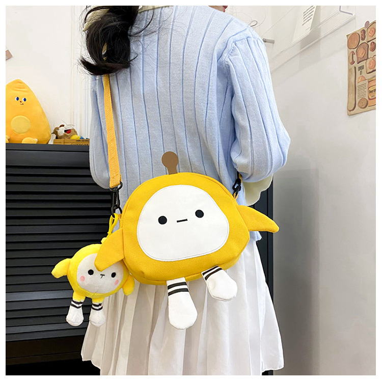 도매 만화 캔버스 가방 귀여운 계란 파티 크로스 바디 가방 트렌디 한 일본 소녀 캐주얼 세련된 작은 배낭 유행스토어 가기