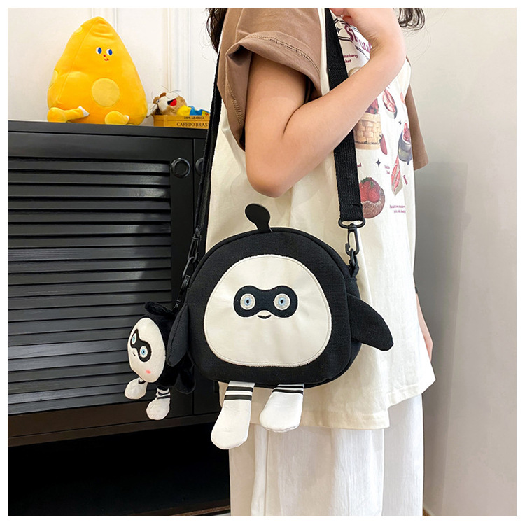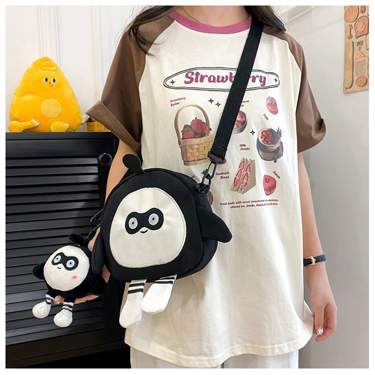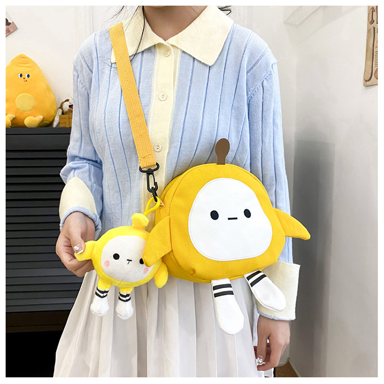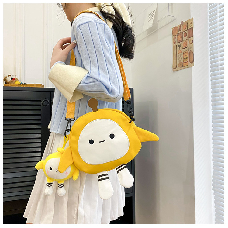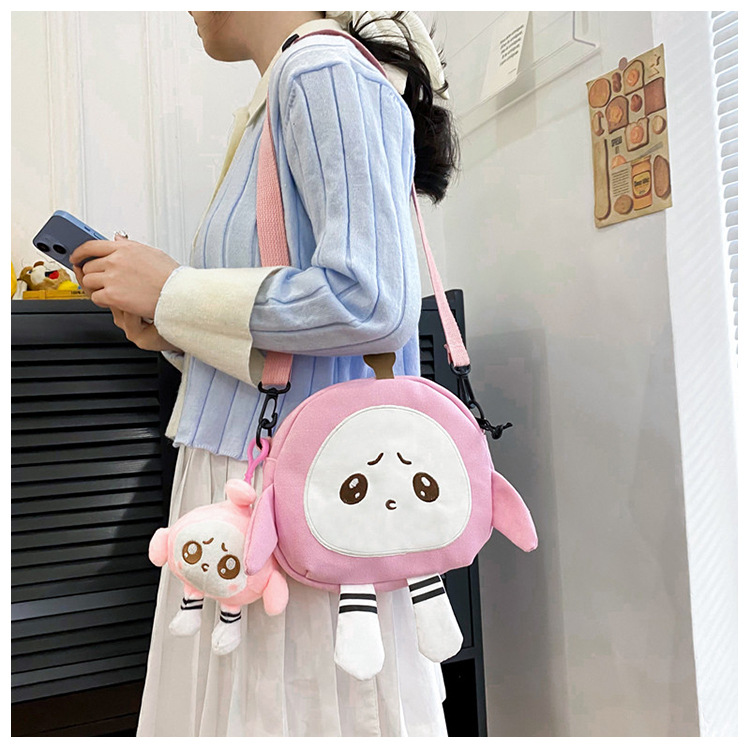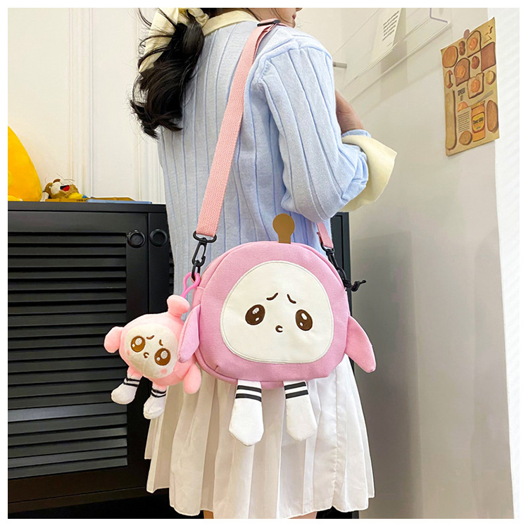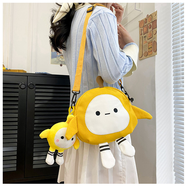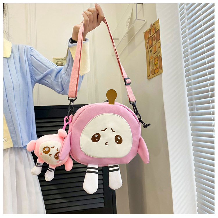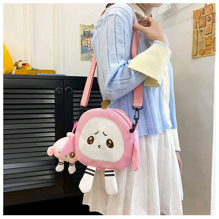 도매 만화 캔버스 가방 귀여운 계란 파티 크로스 바디 가방 트렌디 한 일본 소녀 캐주얼 세련된 작은 배낭 유행스토어 가기