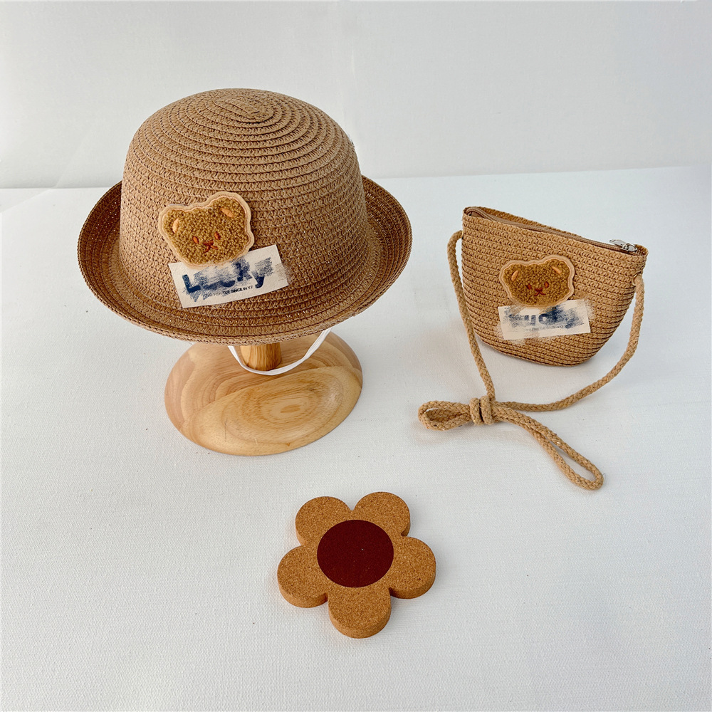 아기의 태양 모자 여름 행운의 곰 어린이 밀짚 모자 소년과 소녀 플랜지 통기성 태양 모자