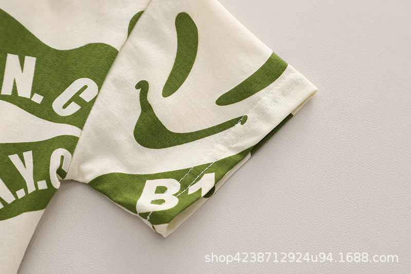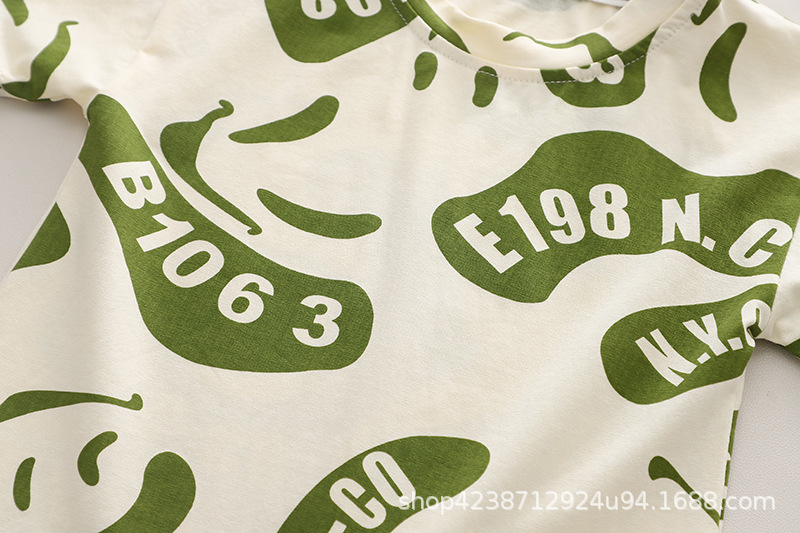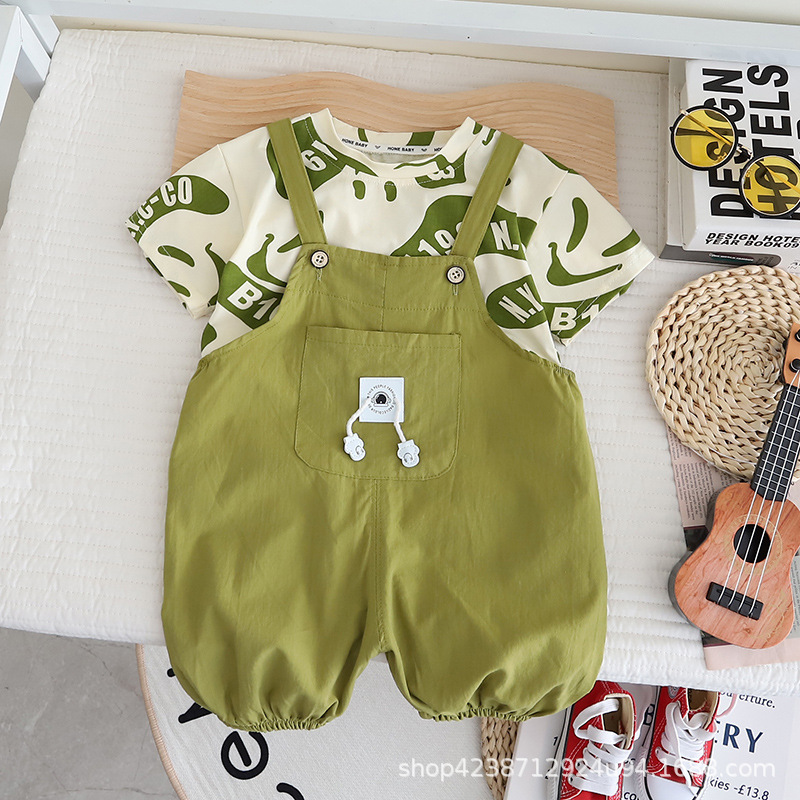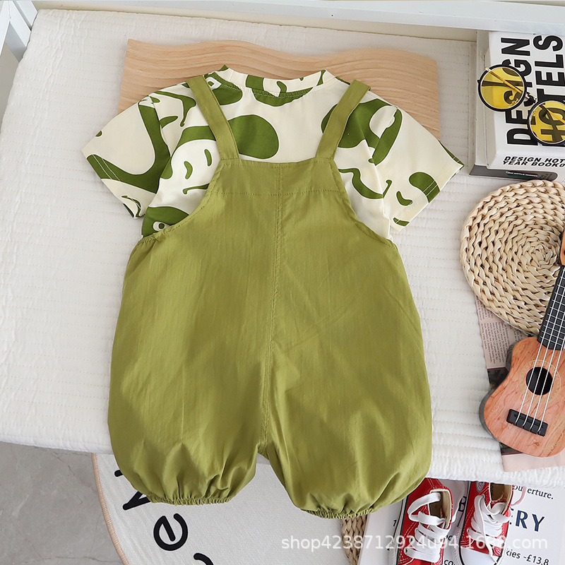 남아 멜빵 여름 2023 새로운 아기 멜빵 아동용 한국식 프린트 티셔츠 투피스 트렌디스토어 가기
