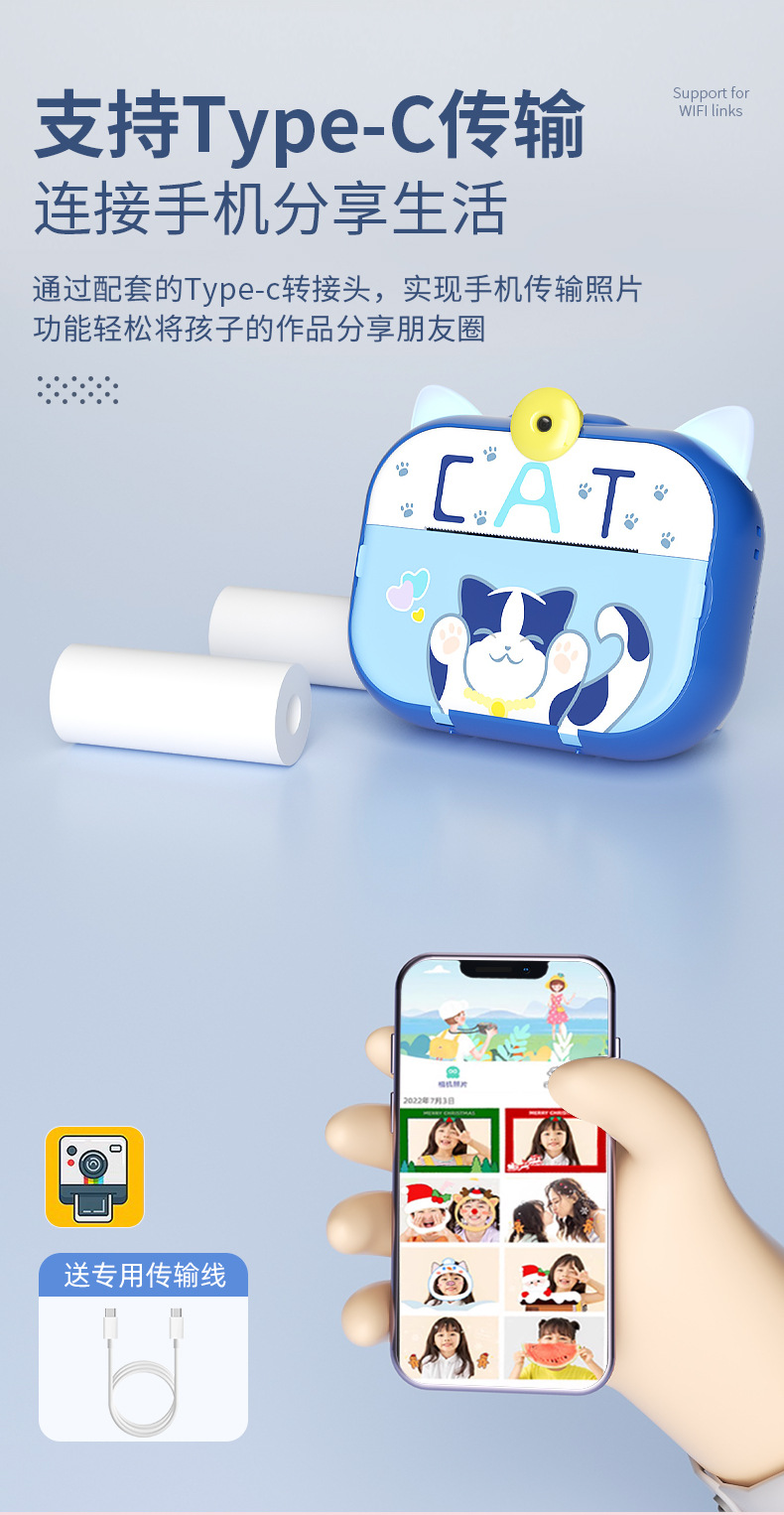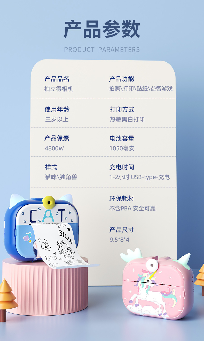 产品配置:相机、说明书、USB线、挂绳、热敏打印纸