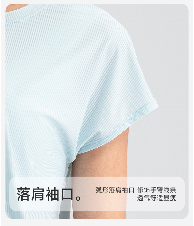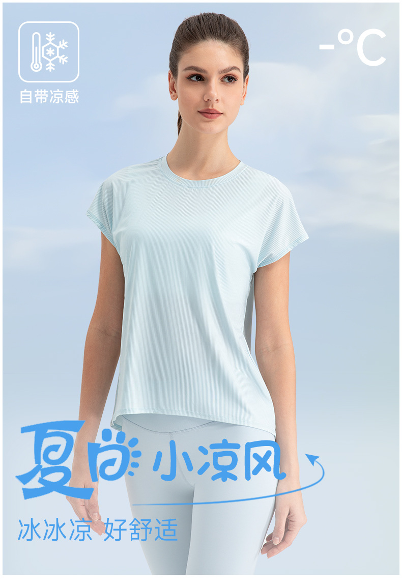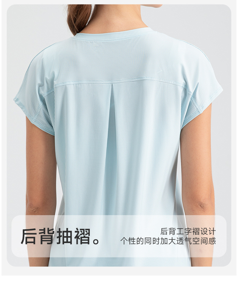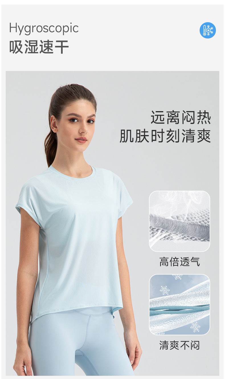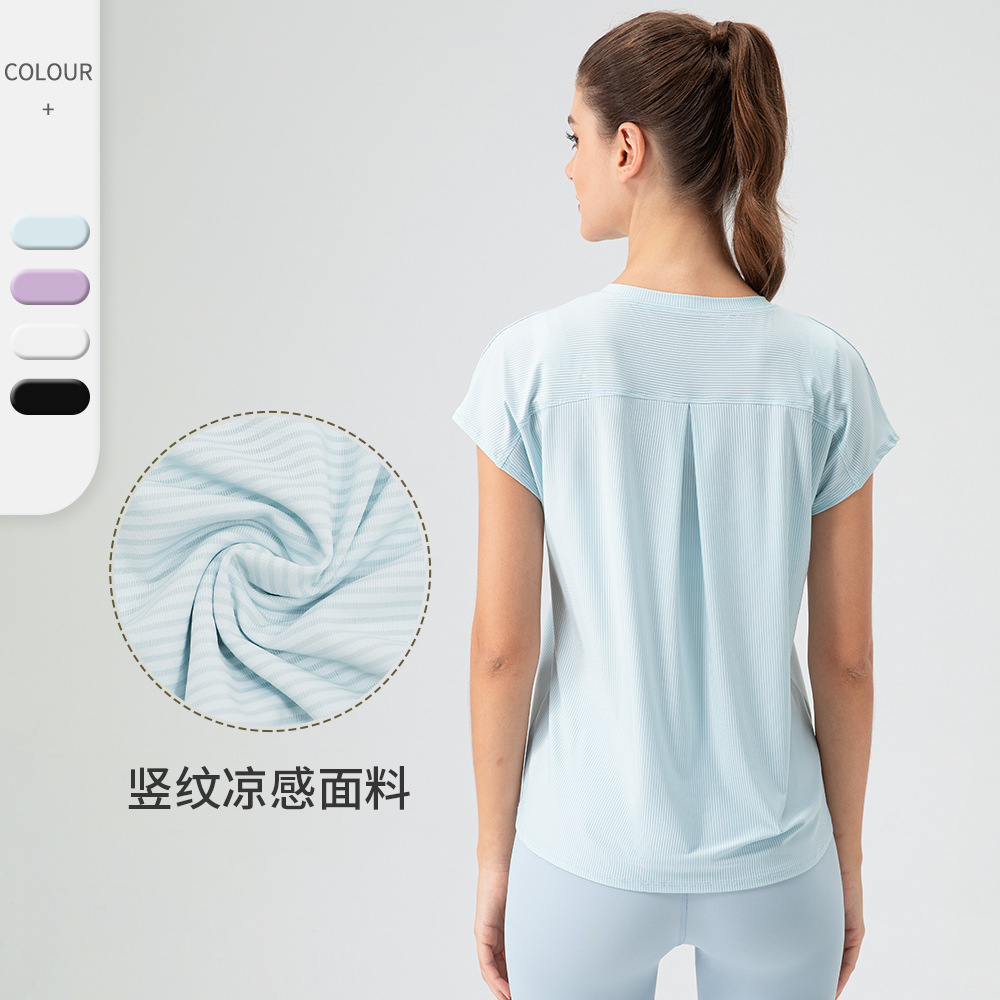 여자의 여름 시원한 통기성 스포츠 반팔 요가 세트 느슨한 캐주얼 탑 속건 달리기 피트니스 반팔 32234스토어 가기